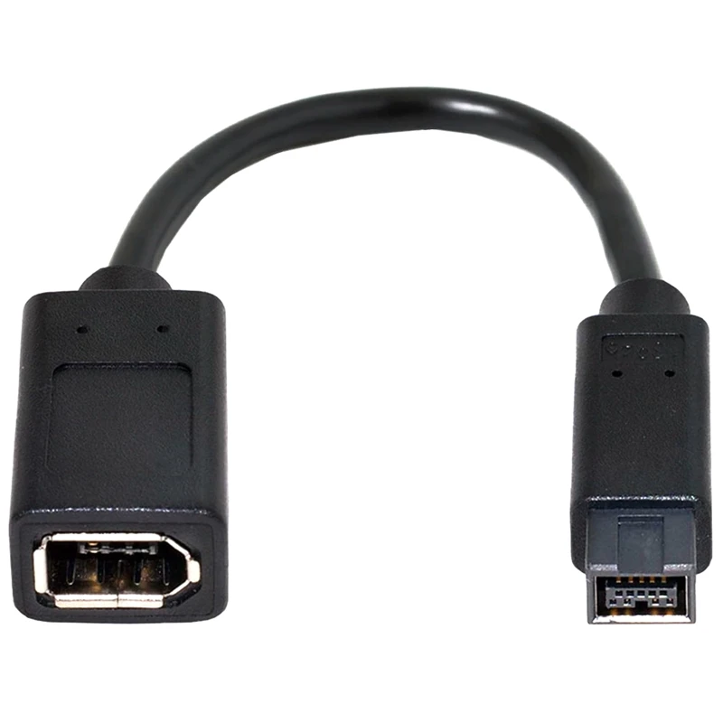 El otro extremo del adaptador cuenta con un conector FireWire hembra de 6 pines al que se puede conectar cualquier cable FireWire 400 macho estándar de 6 pines.