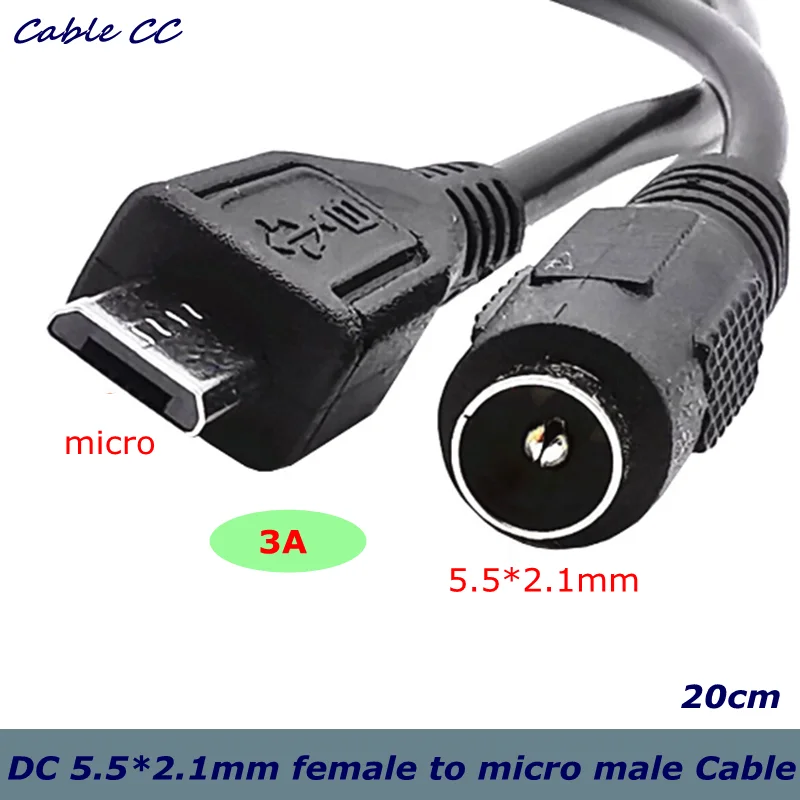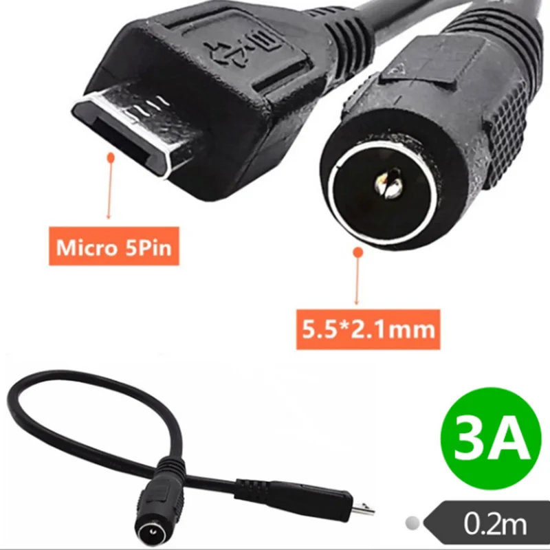 Comprar 20cm DC 5,5mm x 2,1mm hembra a micro USB 5 pines macho DC extensión de fuente de alimentación 22AWG 3A cable adaptador