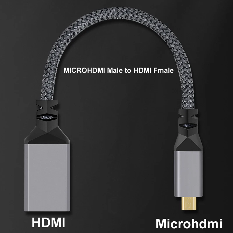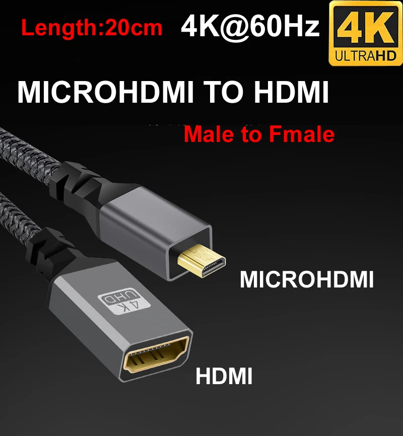 Trenza de nailon de 20CM 4K @ 60HZ V2.0 MicroHDMI MICRO HDMI macho recto a HDMI Fmale