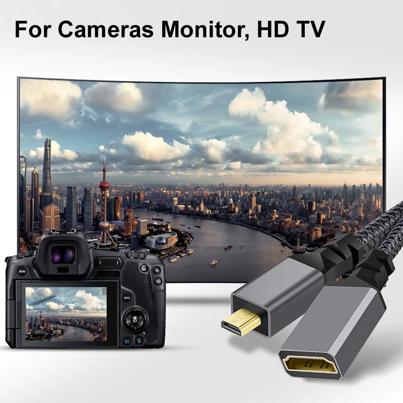 Comprar 20CM Nylon trenza 4K @ 60HZ V2.0 MicroHDMI MICRO HDMI macho recto a HDMI Cable de extensión hembra para cámaras Monitor HDTV