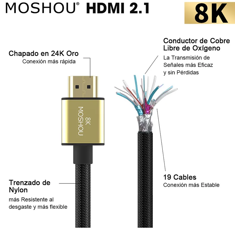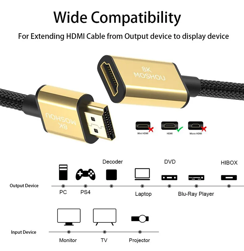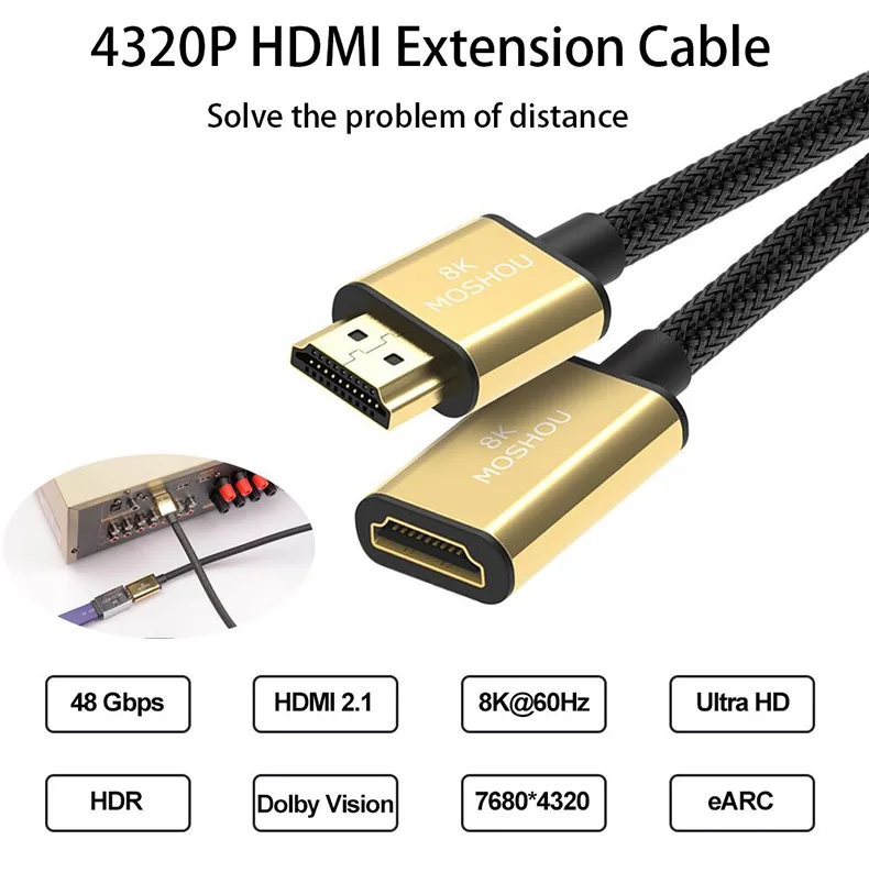 Comprar 2,1 Cables compatibles con HDMI 8K 4K 60Hz MOSHOU macho a hembra adaptador dinámico HDR ARC CEC cable de extensión de vídeo de alta definición