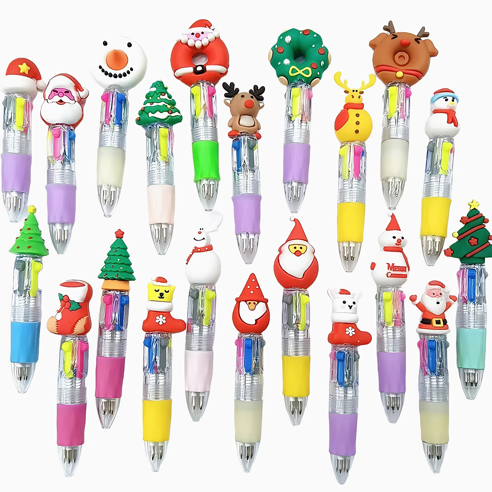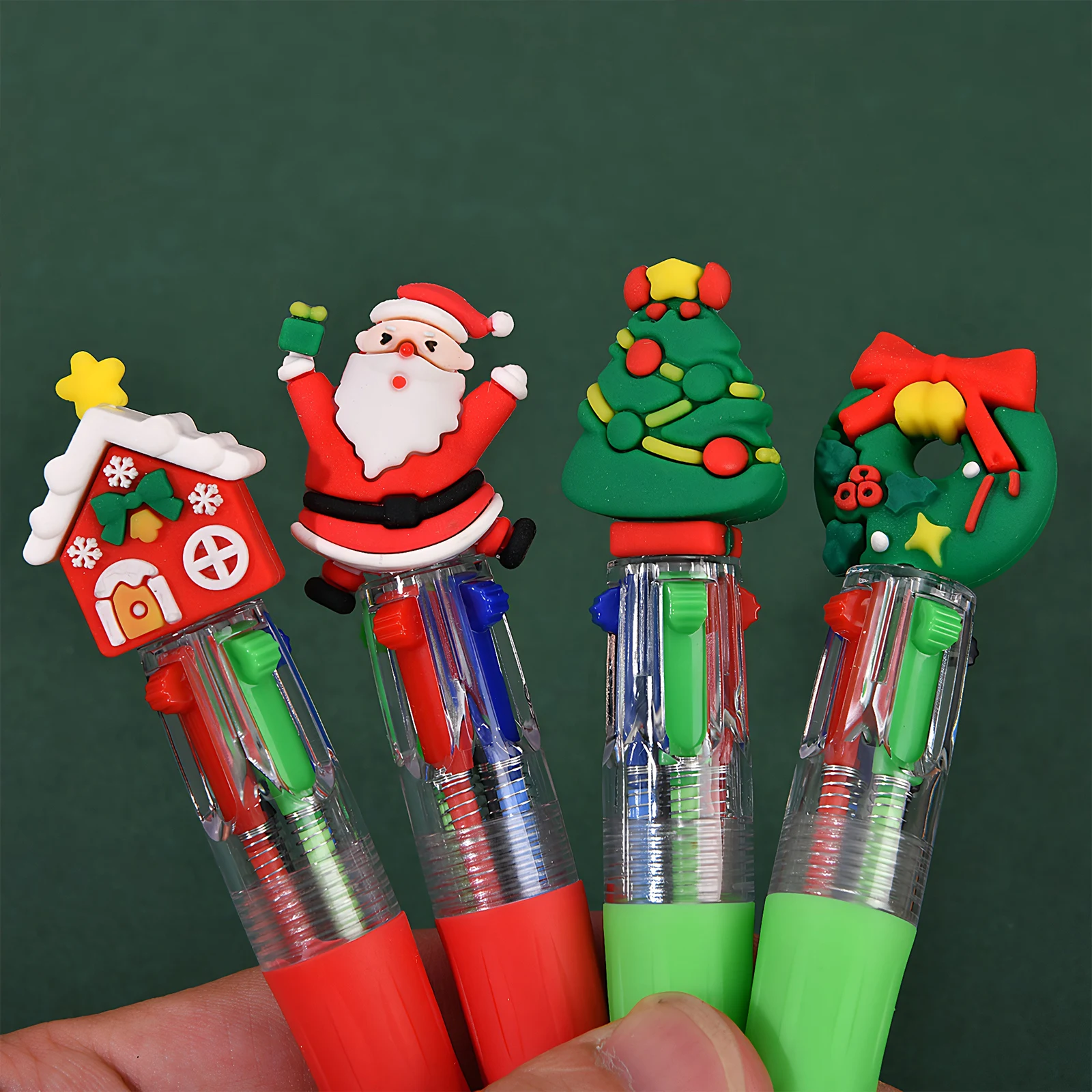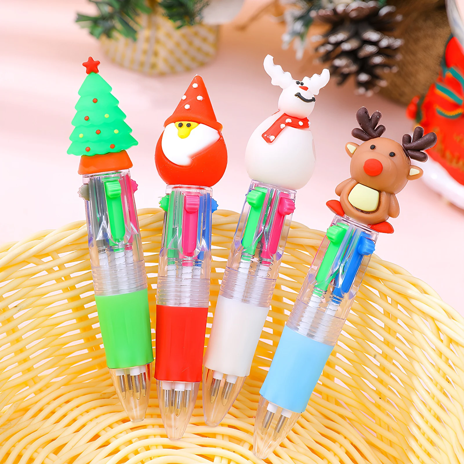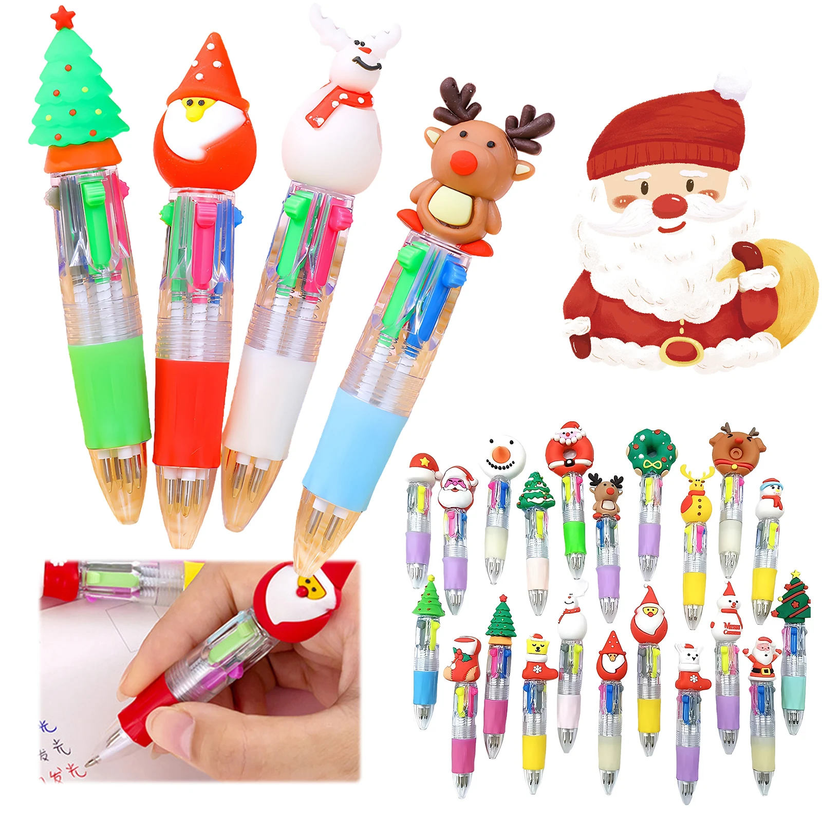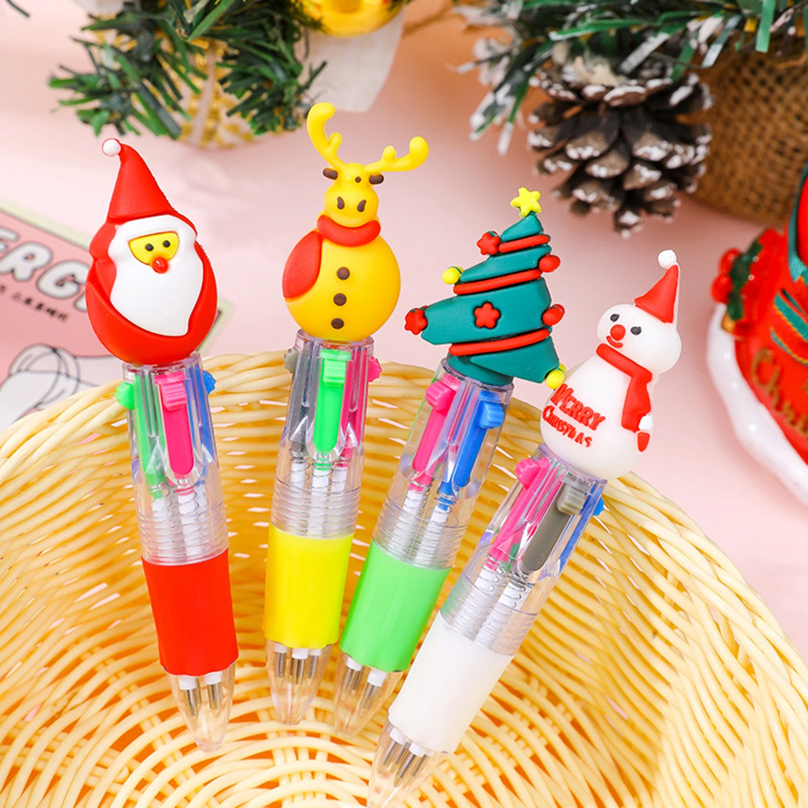 Características:1.Experiencia de escritura versátil:Estos bolígrafos navideños ofrecen cuatro colores de tinta conmutables, lo que facilita resaltar, organizar notas y satisfacer todas sus necesidades de escritura en un bolígrafo compacto.
