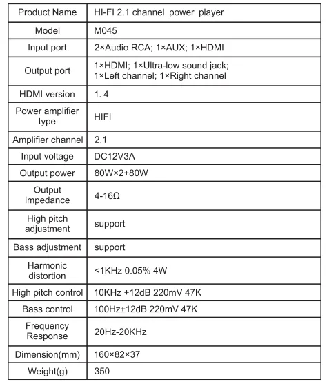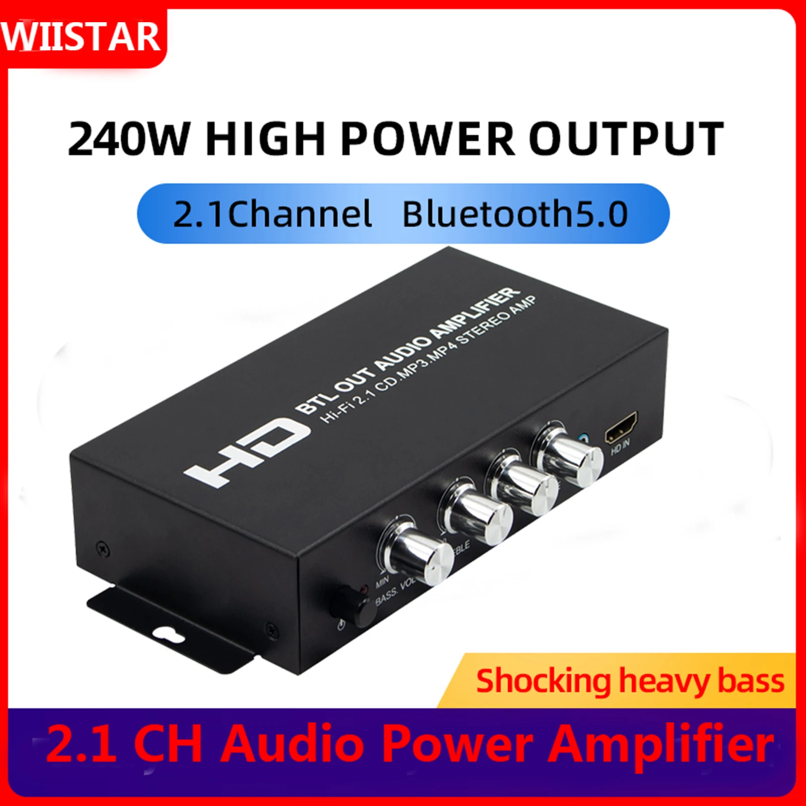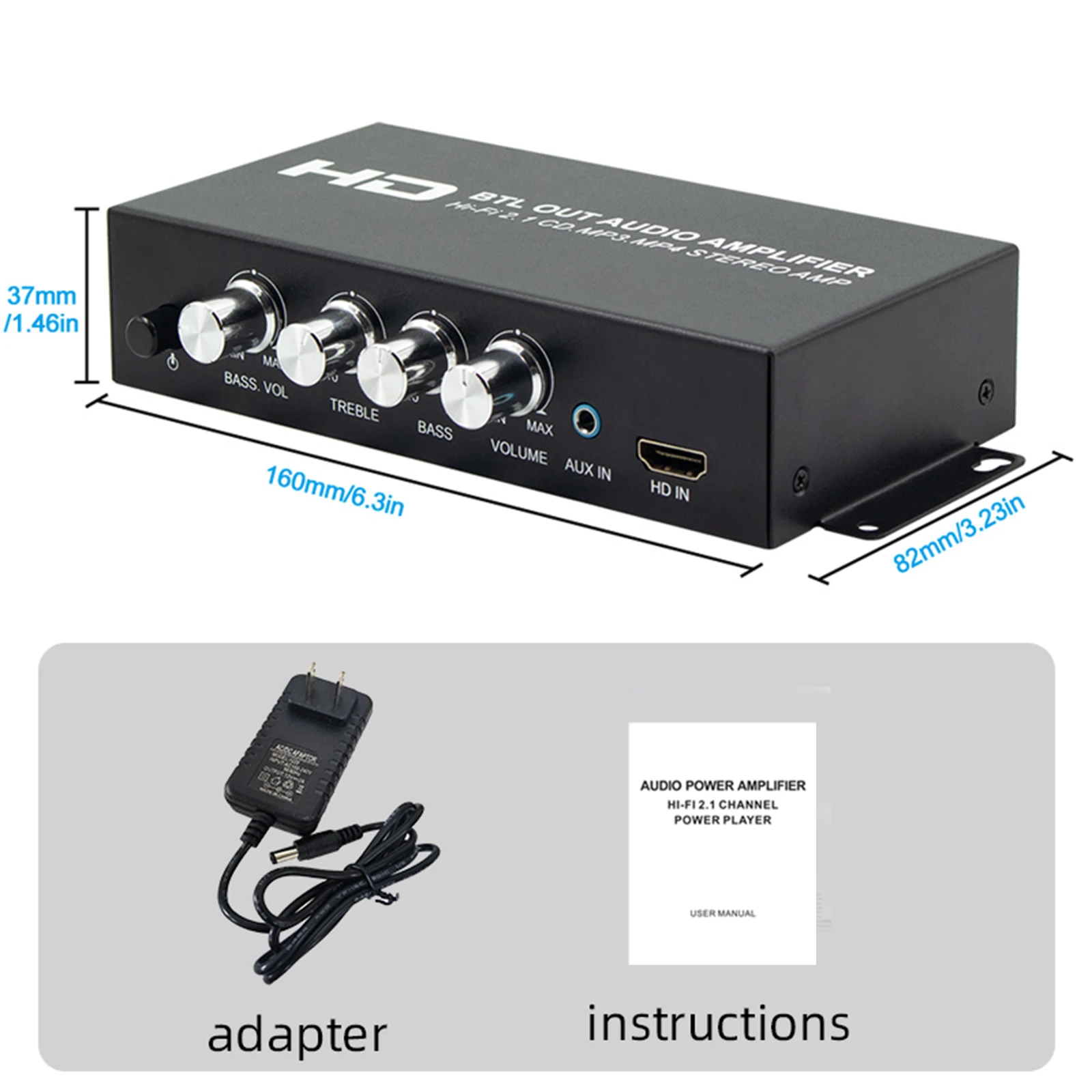 2.1CH 80W×2(L/R)+80W(sub) Amplificador de audio digital estéreo Clase D con salida de subwoofer Compatibilidad con HDMI IN/OUT para altavoces pasivos domésticos/automóviles/marinos/exteriores