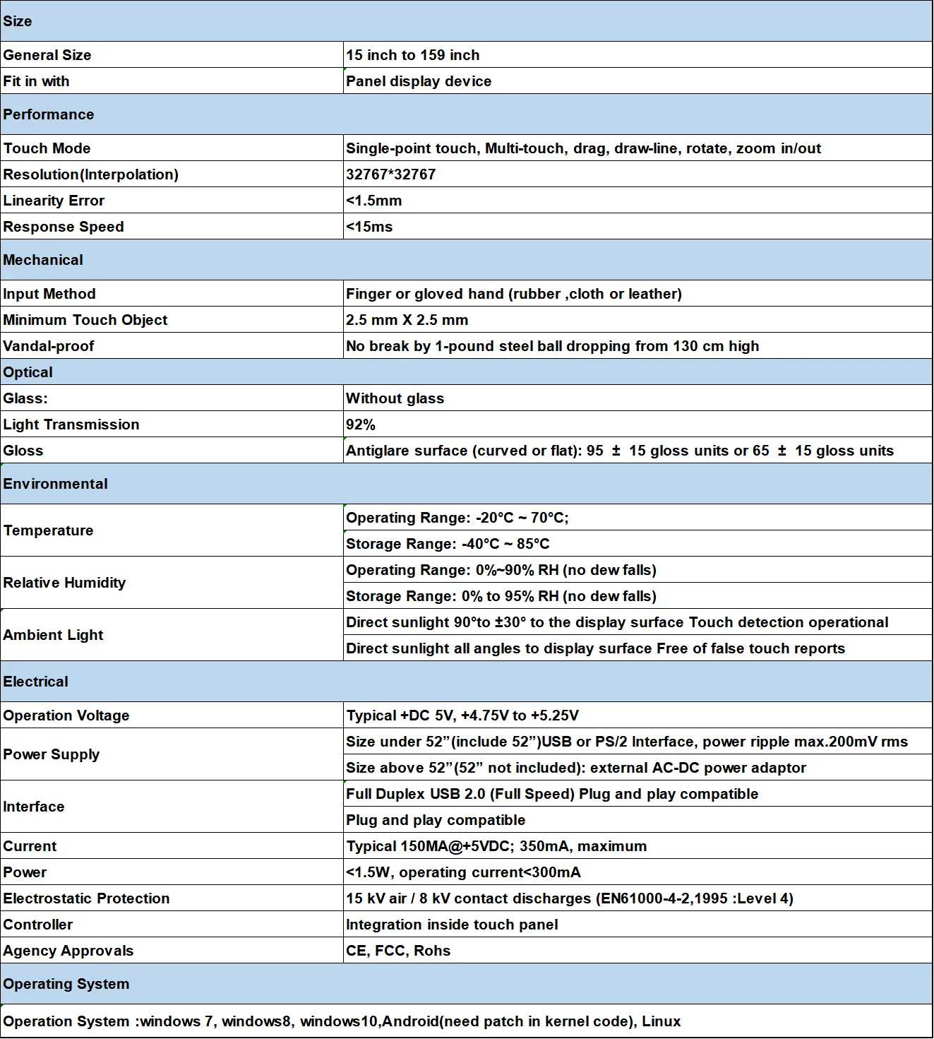 Admite 10 puntos de contacto en sistemas Windows7, Windows8, Windows10 y Android