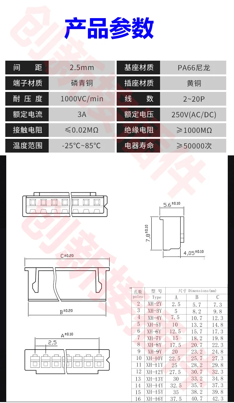 22AWG JST XH2.54mm Paso conector de cable de un solo/doble cabezal 2P/3/4/6/7/8/10/12/14/16/18/20 pines Cable electrónico