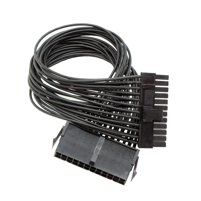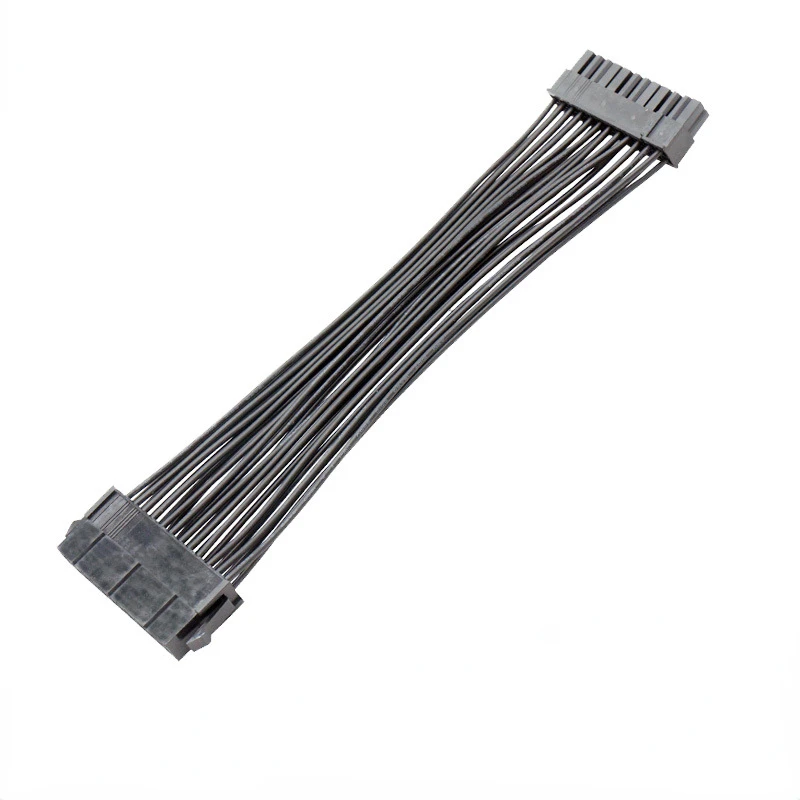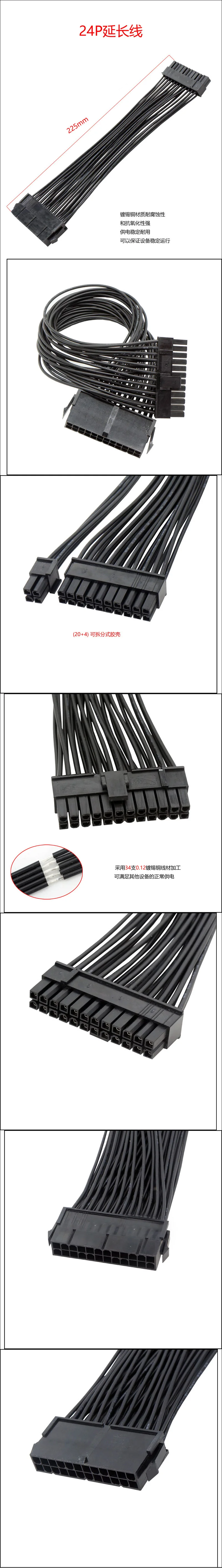 22cm/32cm PC PSU ATX 24 pines macho a 24 pines hembra placa base extensión cable de alimentación【Nombre del producto】: cable de alimentación de 24 pines [Longitud del producto]: 22cm, 32cm 【Tipo de cable】: 1007 18AWG [Material aislante]: aislamiento de PVC 【Especificación del conductor】: 34*0,12 TS "Material conductor": cobre estañado [Diámetro exterior del cable]: od2.1mm 【Temperatura clasificada】: 80 ℃ "Color del alambre": negro "Peso de la fuente": 22cm 55g, 32cm; 75g. [Interfaz del producto]: 5557 24 pines (20 + 4) En un extremo y 5559 24 pines en el otro extremo 【Función del producto】: resuelve el problema de que el cable de alimentación de 24 pines no es lo suficientemente largo.