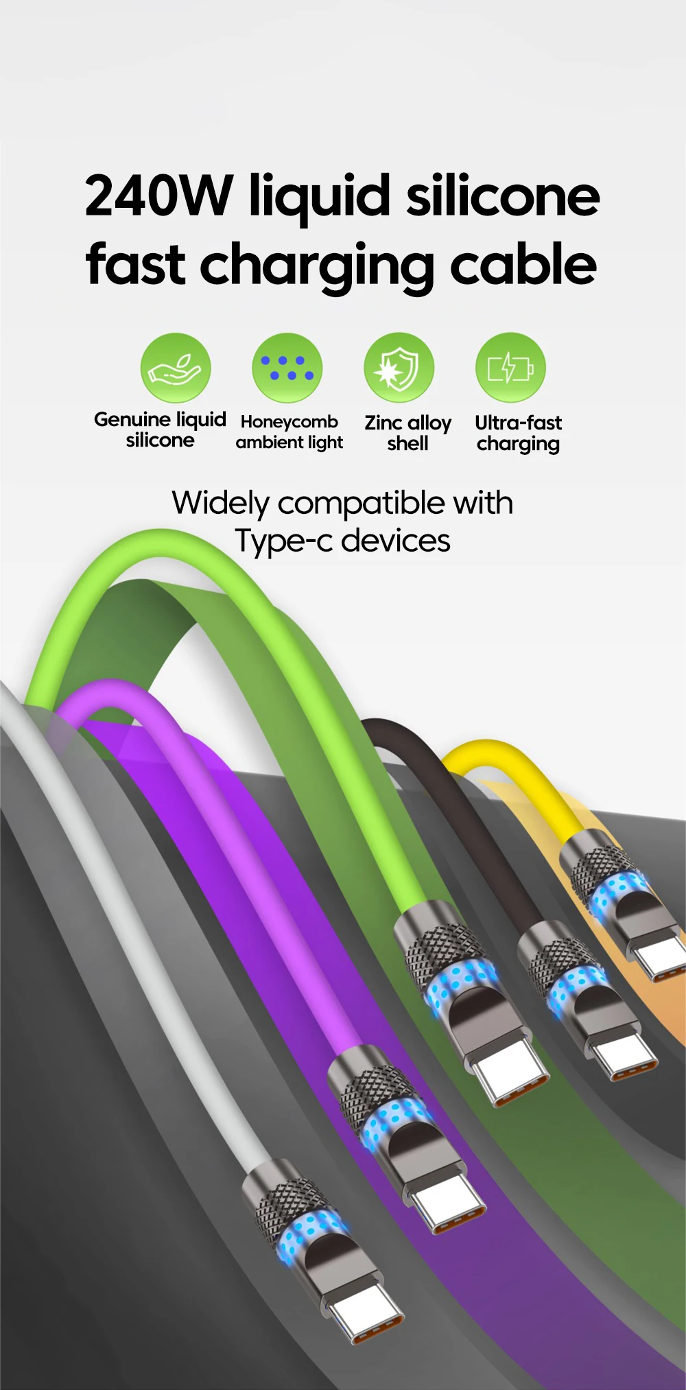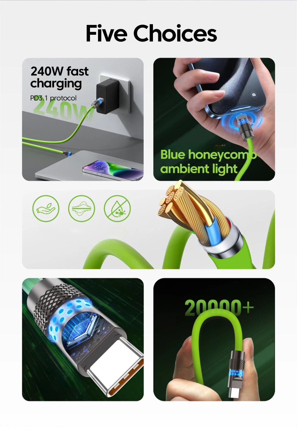 Me encanta este cable, el silicón suave es genial, funciona perfectamente, definitivamente compraré más.