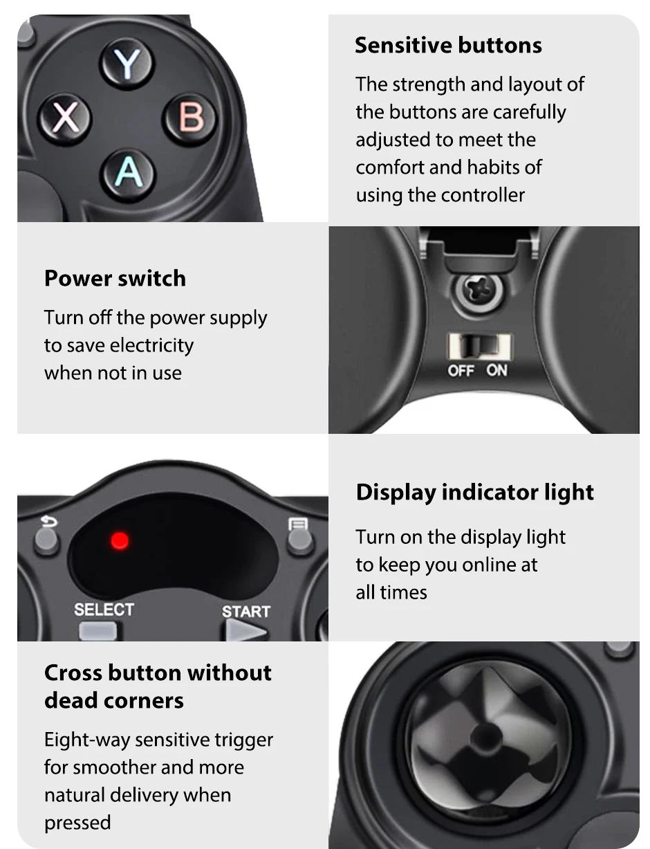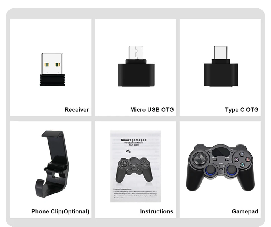 • Convertidor de OTG:Conecte fácilmente su teléfono P3 Android, tableta, PC o caja de TV inteligente a este GamePad con el convertidor OTG.