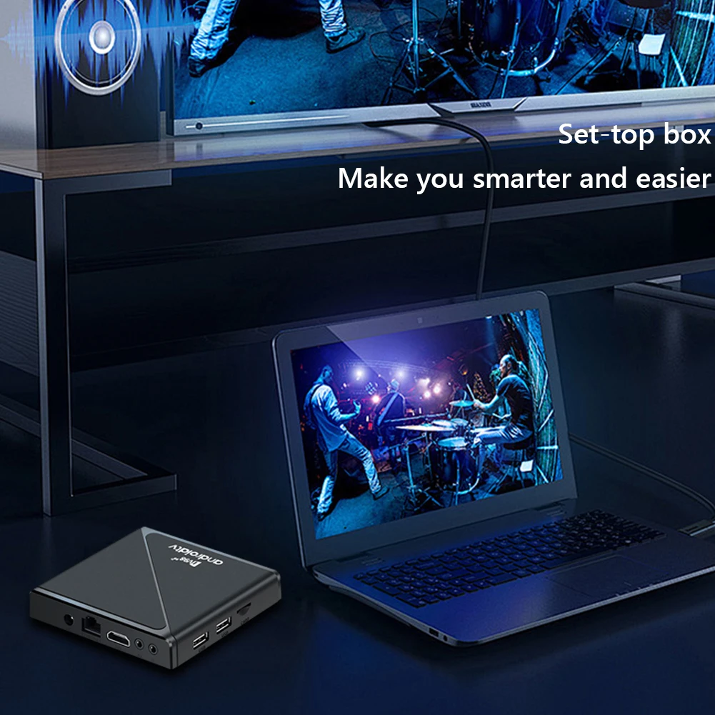 2,4G y 5G WiFi Dual BT5.0 decodificador Android 14 Android 14 reproductor multimedia decodificador Allwinner H313 cuatro Core control remoto de voz Digital