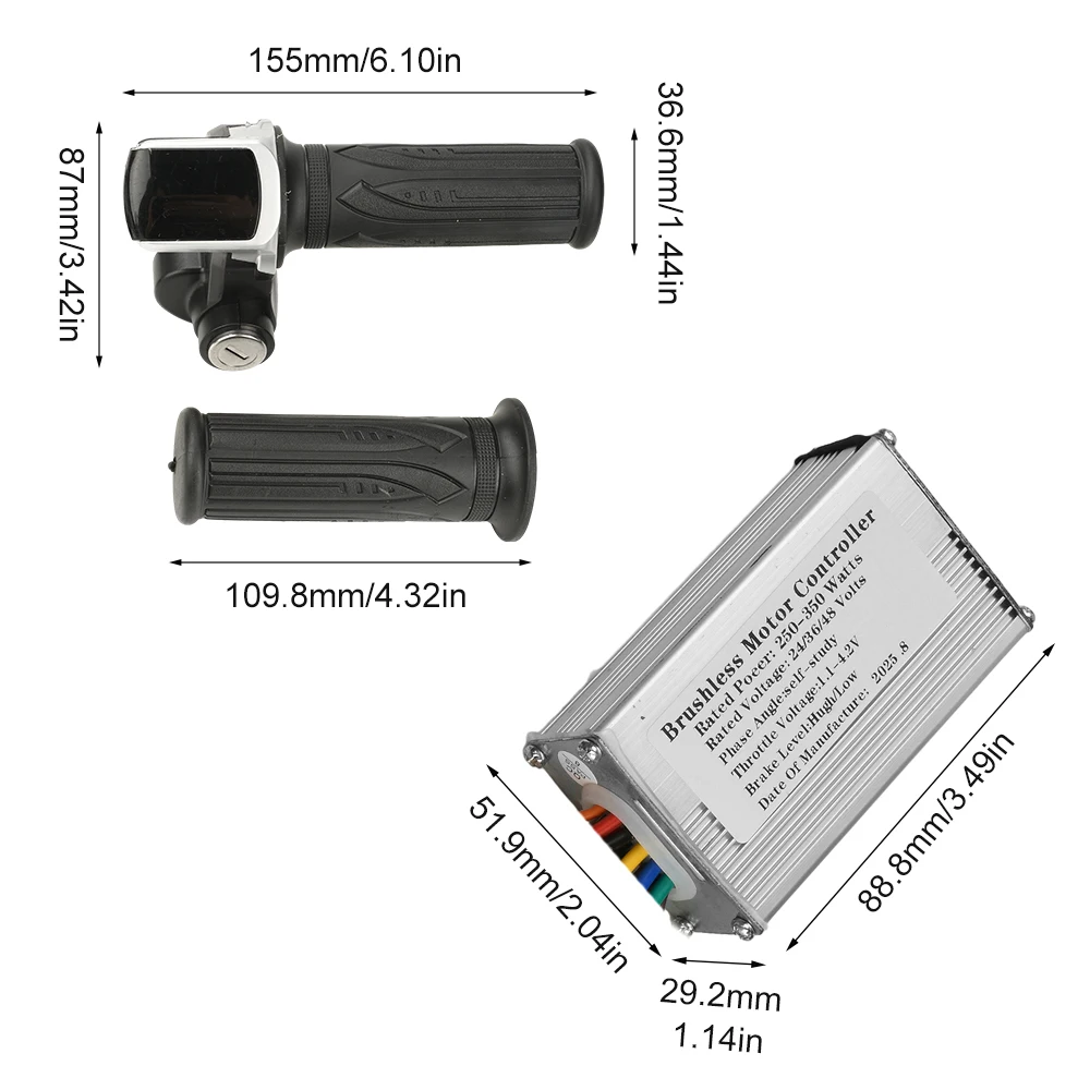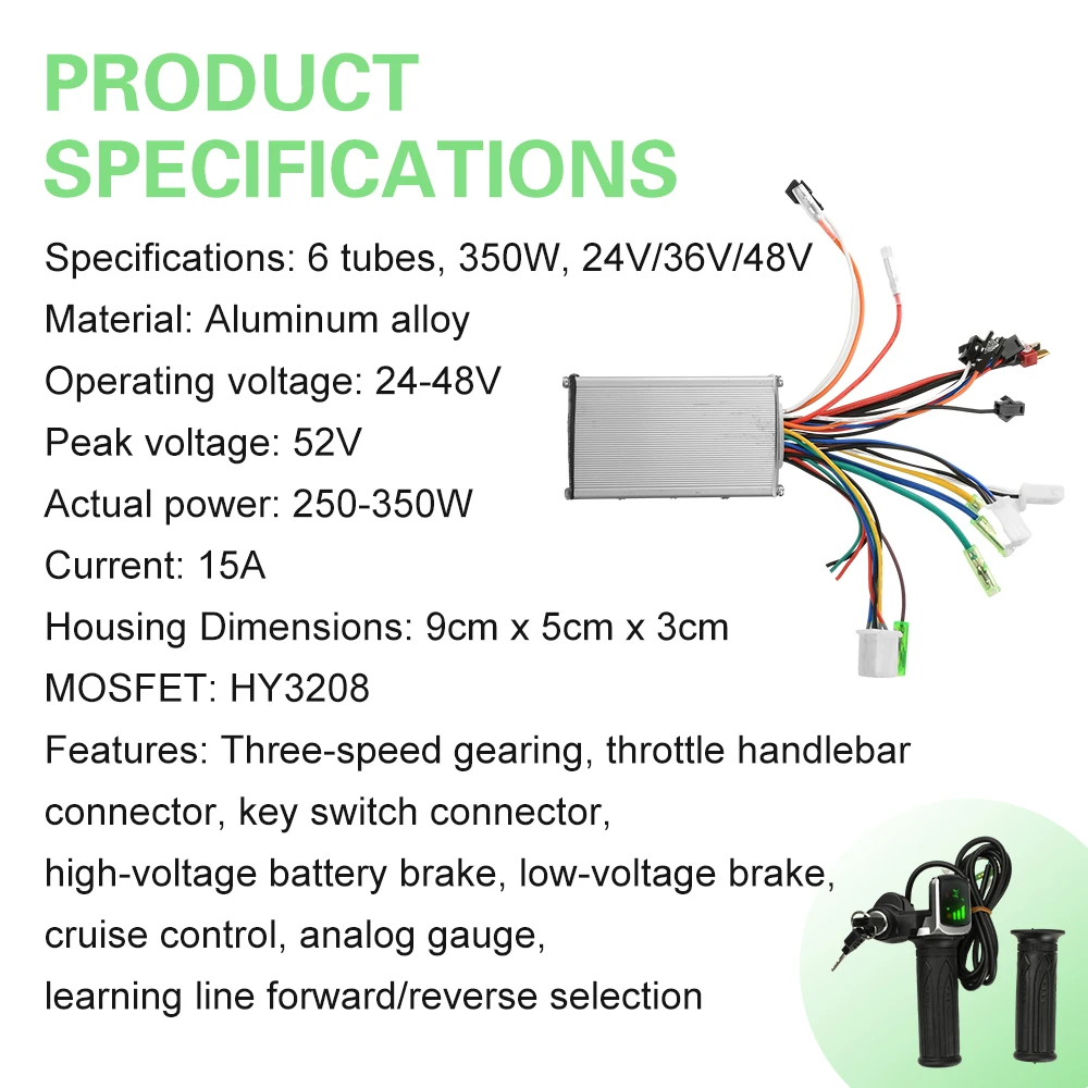 1. Supports multiple voltage inputs of 24V, 36V, and 48V, compatible with various battery systems2. Utilizes sine wave control for smooth motor operation, low noise, and a more comfortable riding experience3. Equipped with a lockable throttle grip to enhance vehicle safety, prevent accidental startup, and provide greater peace of mind4. Constructed with high-quality materials for extended service life and reliable performance5. Easy to install and use, with an LCD display bracket compatible with 22.5mm handlebars
