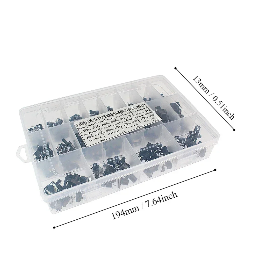 25/200/250 Uds interruptor de botón táctil 6*6MM 12*12mm 12*12*7,3MM TV juguetes de uso doméstico botón Micro-actuador Kit de interruptor de llave