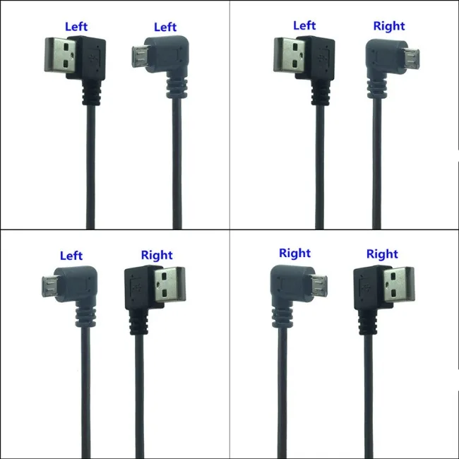 Comprar 25 cm Micro-USB 5 pines ángulo recto a ángulo izquierdo derecho 90 grados USB 2.0 Cable de carga de datos de doble codo