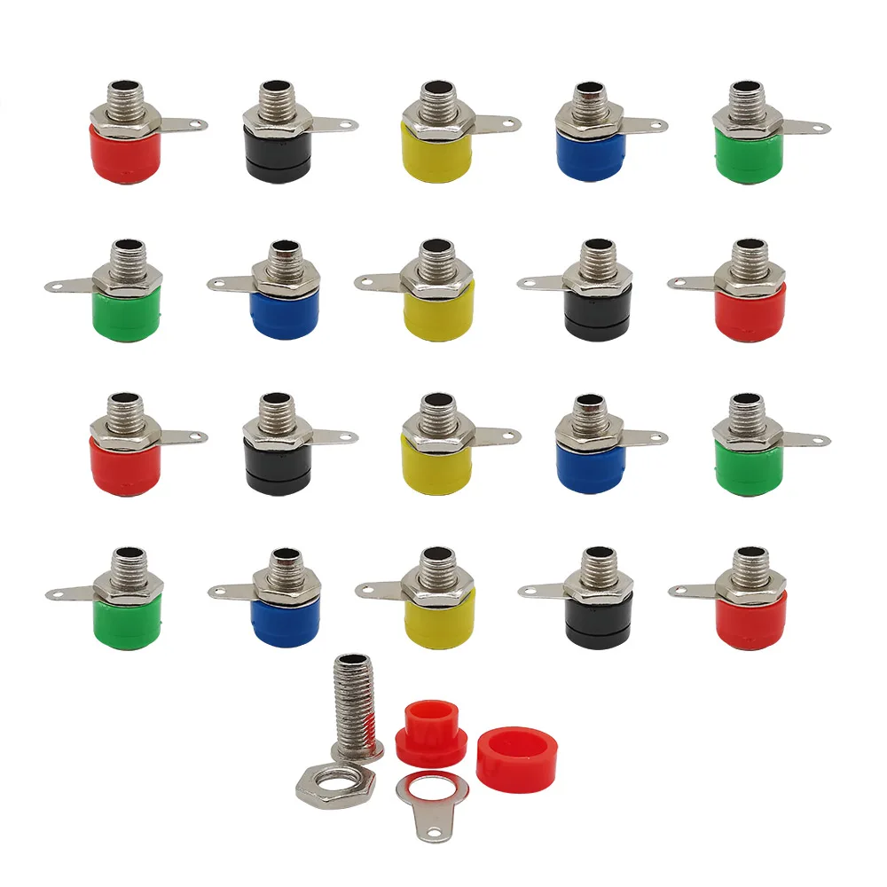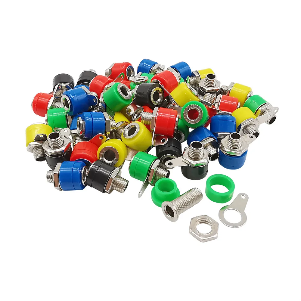 25 uds 5 colores 4mm conector de prueba de poste de unión de plátano adaptador de enchufe hembra DIY rojo negro verde amarillo azul