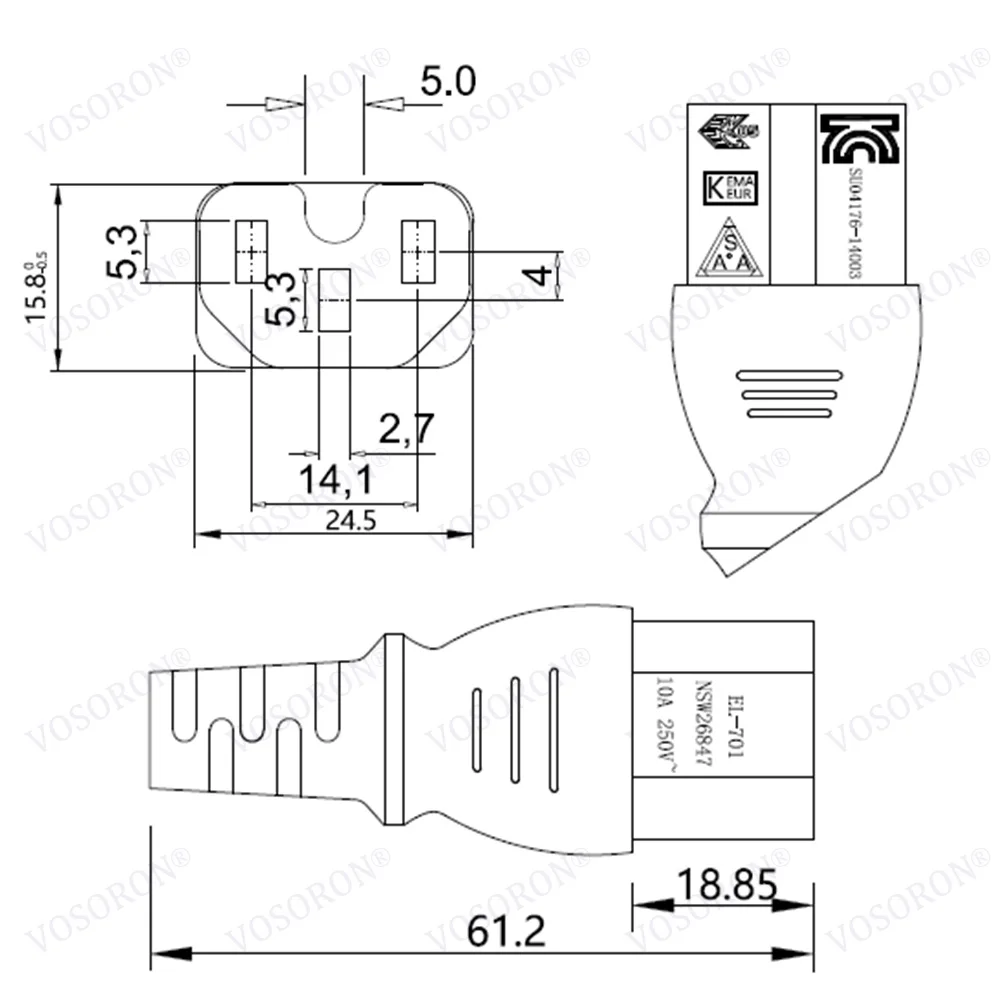 250V 10A IEC 60320 C14 320 C14 Macho a C15 Hembra 3X1.5m2 Cable de extensión de alimentación para enchufe de hervidor 1,8 M