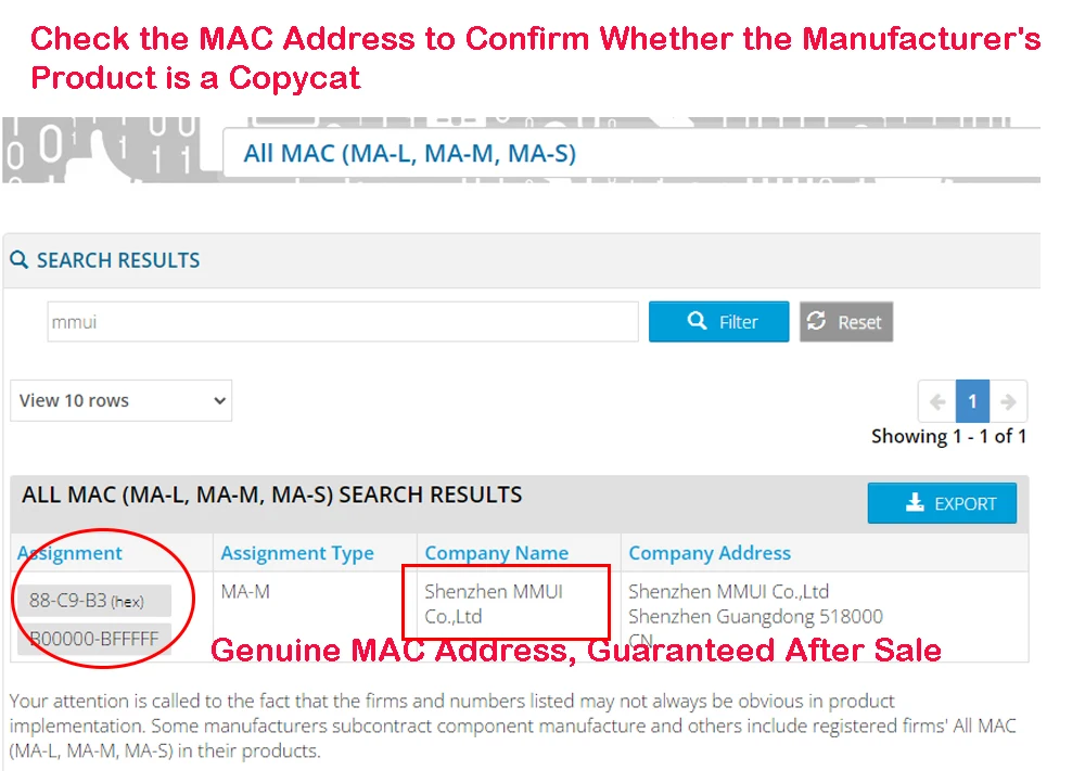 Dirección de verificación de dirección MAC