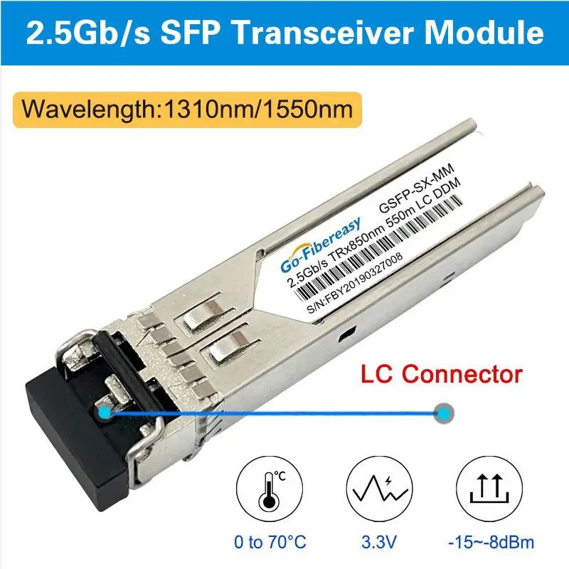 Comprar 2.5G SFP Transceiver Module Módulo óptico dúplex LC 2,5gbs SFP, 850nm/1310nm, 2km,20km,40km,80km, DDM transceptor SFP, canal de fibra para Mikrotik/Zte/tp-link