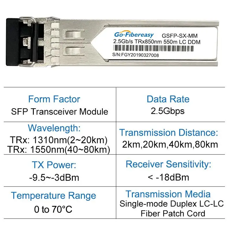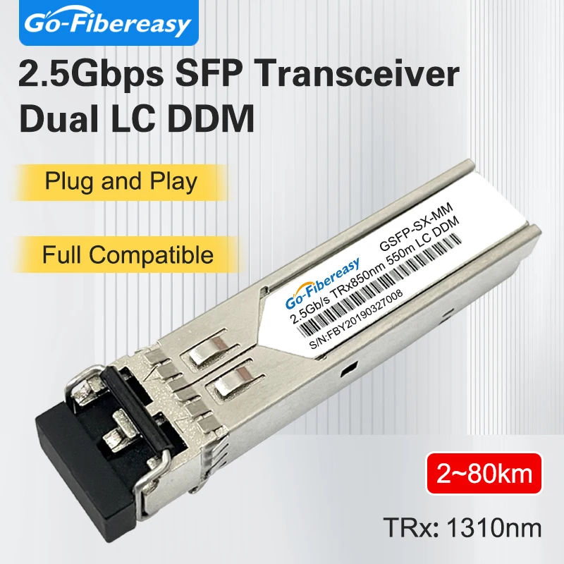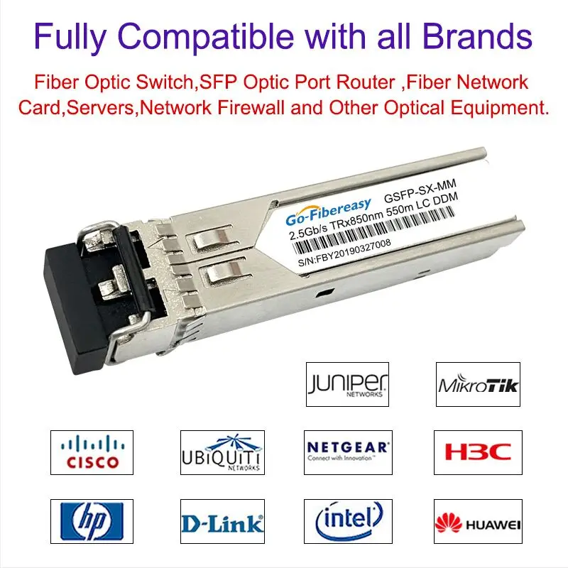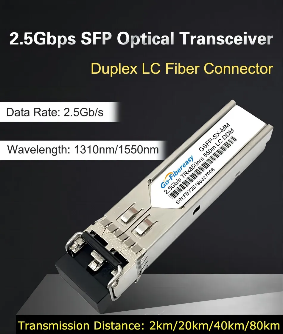 Módulo óptico SFP de canal de fibra de 2,5 GbpsDDM Duplex LC 850nm/1310nm/1550nm 2km,10km,20km,40km, módulo transceptor SFP de 80km compatible con Mikrotik/Zte/tp-link/d-link/Cisco. Interruptor de fibra óptica HuaWei