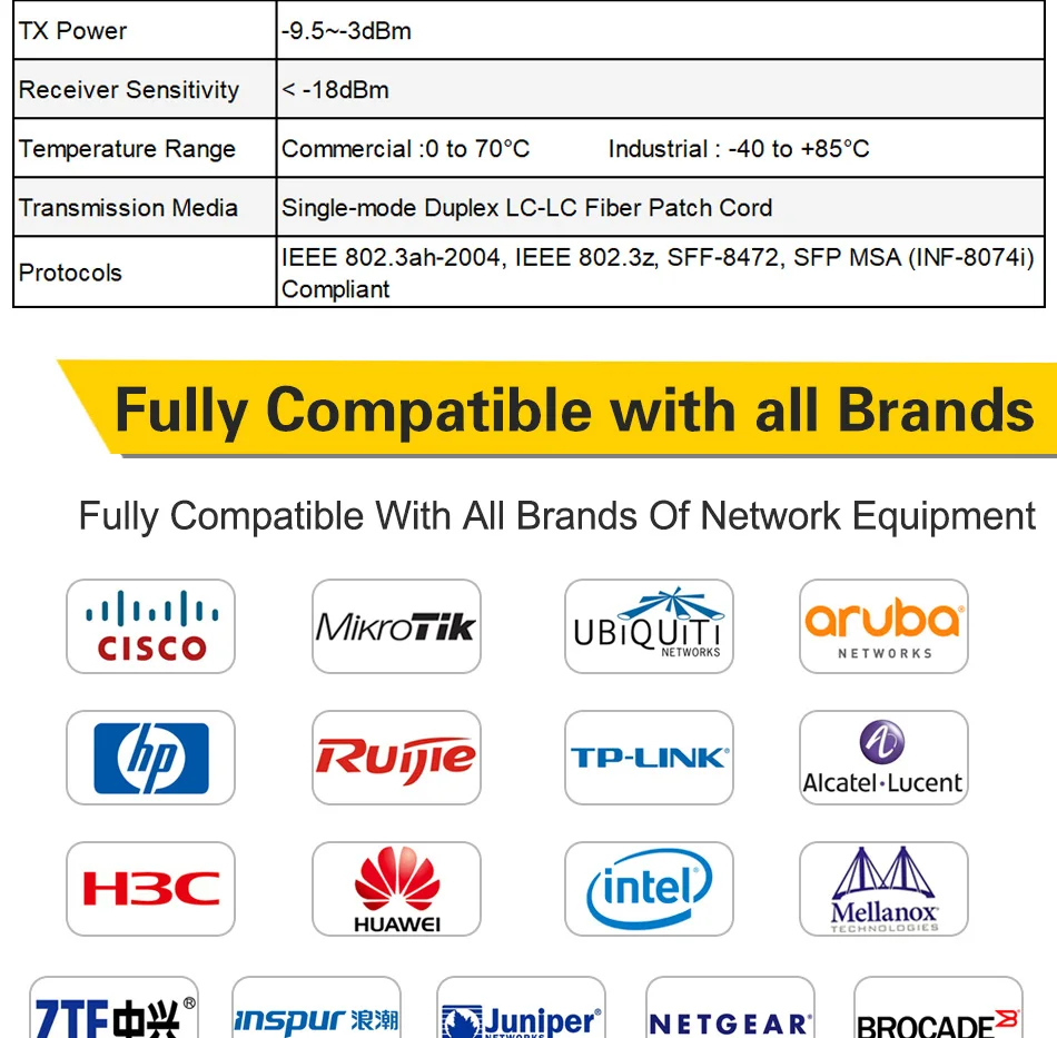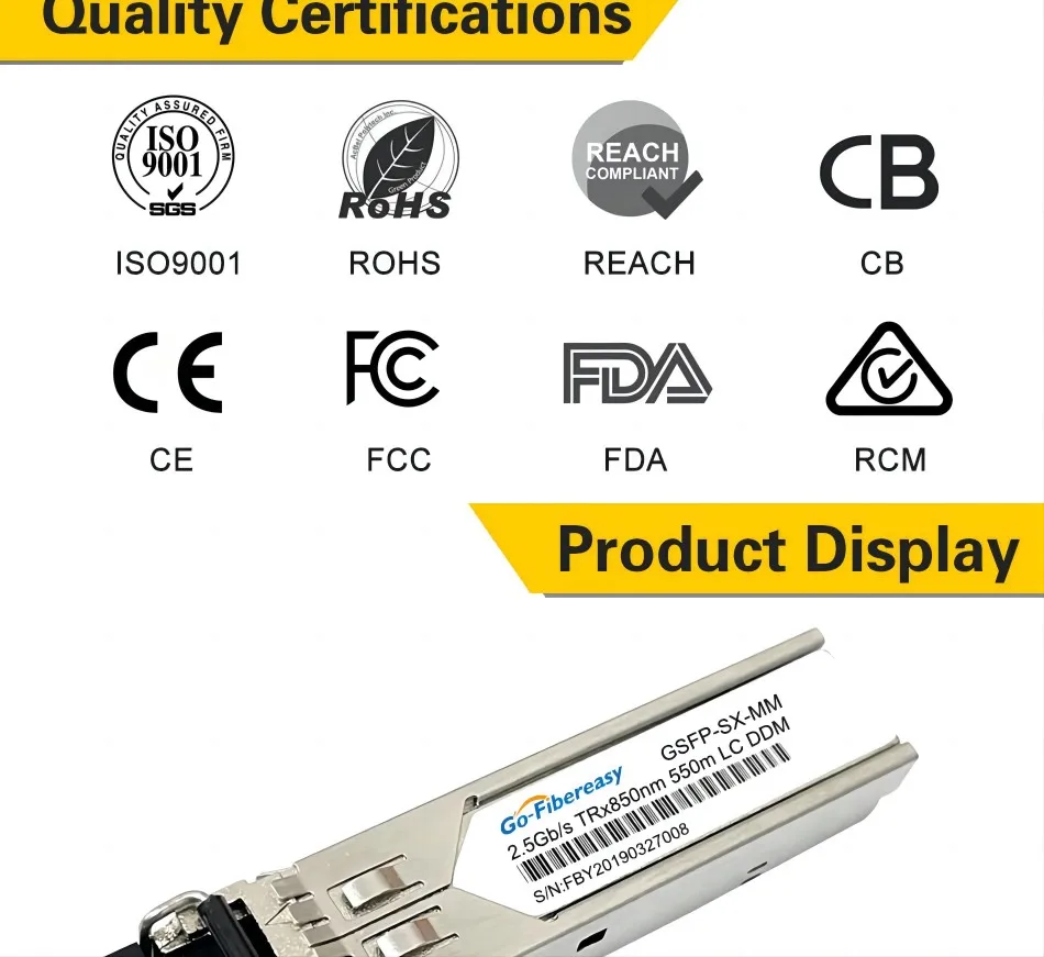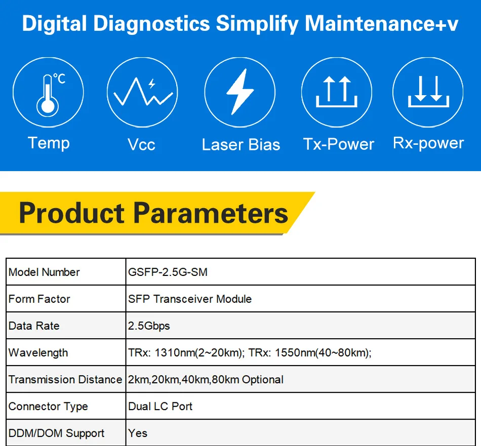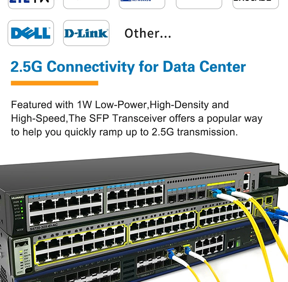 Módulo óptico SFP de canal de fibra de 2,5 GbpsDDM Duplex LC 850nm/1310nm/1550nm 2km,10km,20km,40km, módulo transceptor SFP de 80km compatible con Mikrotik/Zte/tp-link/d-link/Cisco. Interruptor de fibra óptica HuaWei