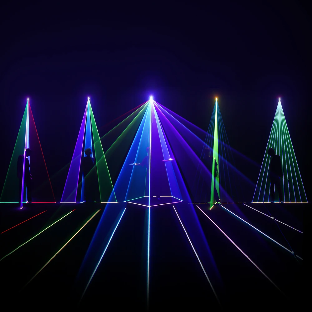 El rayo láser exhibe líneas brillantes, nítidas y puras, con una direccionalidad y pureza espectral extremadamente altas.Estos haces pueden presentar impresionantes efectos visuales mediante una manipulación precisa del haz y una proyección multidimensional en entornos de escenarios específicos, creando embriagadores efectos de entrelazamiento de luces y sombras.Ya sea en actuaciones, exposiciones o eventos a gran escala, la aplicación de la tecnología láser brindará un impacto visual incomparable, mejorará la atmósfera general y sumergirá al público en un disfrute audiovisual de ensueño.