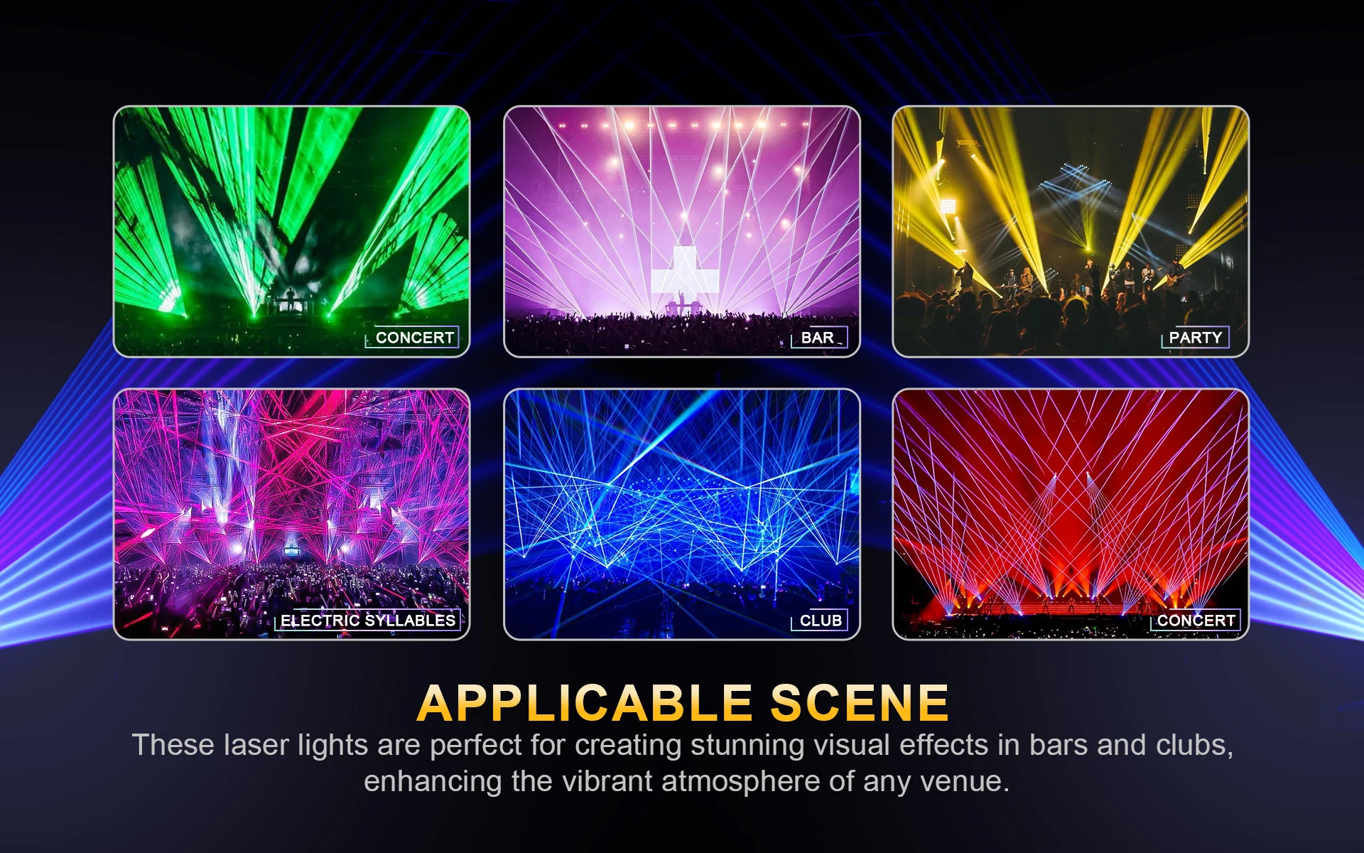 un maravilloso festival de música o un tranquilo paseo nocturno, nuestro equipo láser puede crear un mundo inolvidable de luces y sombras.