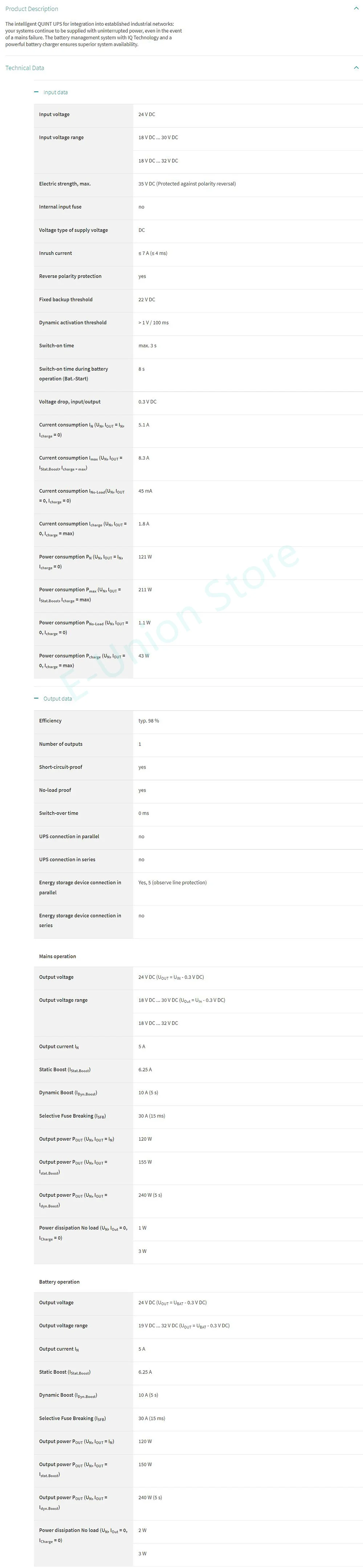 2906991 QUINT4-UPS/24DC/24DC/5/USB para Phoenix UPS 24VDC/5A La fuente de alimentación ininterrumpida funciona perfectamente Envío rápido Alta calidad