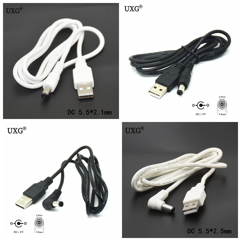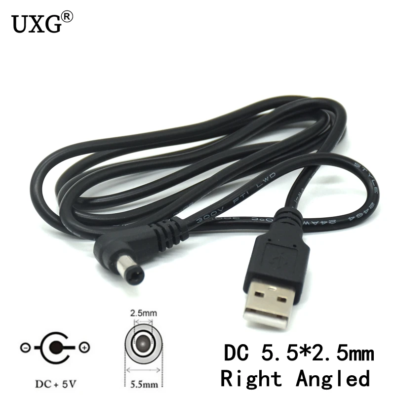 Comprar 2M 1M DC enchufe de alimentación USB convertir a 5,5*2,5mm/DC 5,5x2,5 blanco negro forma de L conector de ángulo recto con Cable USB
