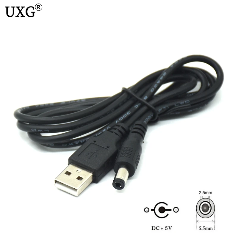 Enchufe de alimentación de CC negro USB A a CC 5,5mm x 2,5mm 5 voltios CC 5,5x2,5mm Conector de barril Cable de alimentación de carga cables adaptadores de 2 pines 1M 2A