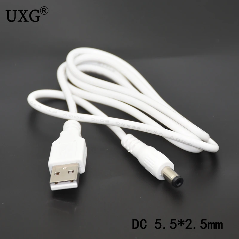 Comprar 2M 1M DC enchufe de alimentación USB convertir a 5,5*2,5mm/DC 5,5x2,5 blanco negro forma de L conector de ángulo recto con Cable USB