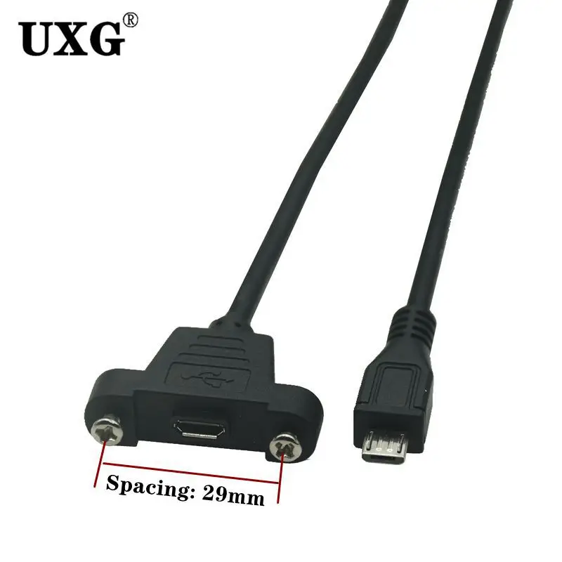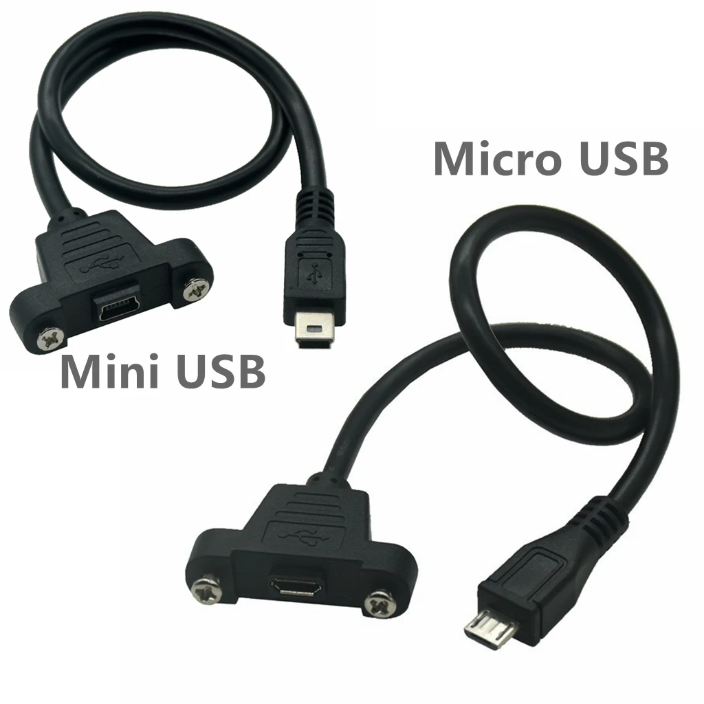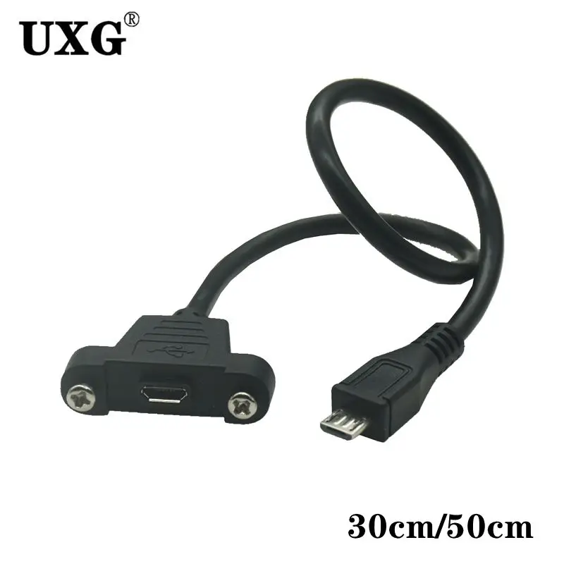 Micro-USB 5 pines Micro USB 2.0 conector macho a Micro USB 2,0 Cable de extensión hembra 30 cm 50 cm con orificio de montaje en panel