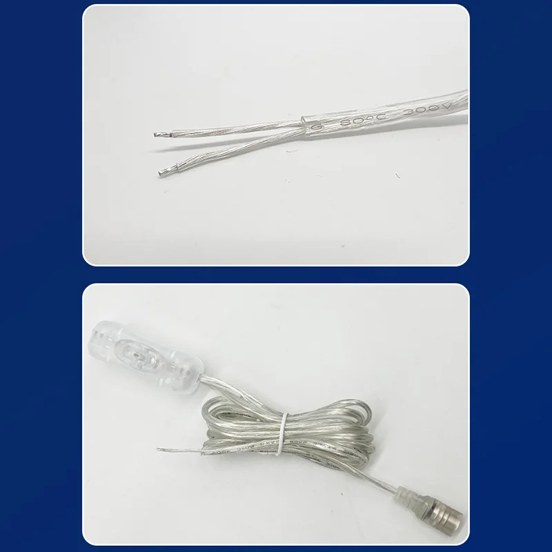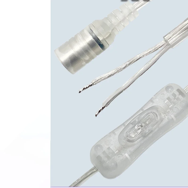 M 22awg DC 12V Cable hembra 304 botón de interruptor conector extensión Cable de alimentación para tira de luz LED 5,5xmm2,1mm transparente