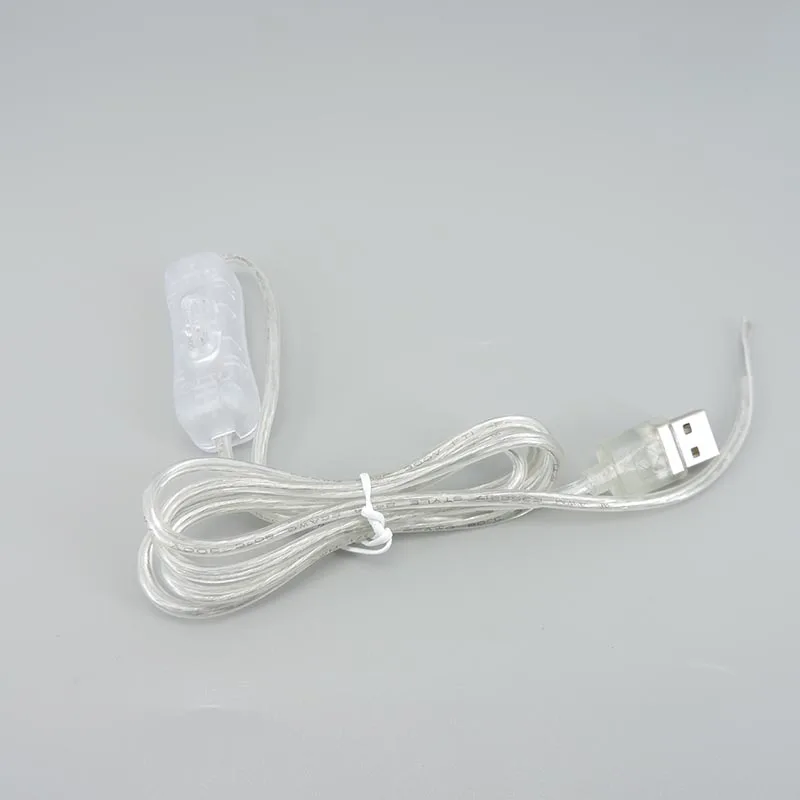 2M 22awg transparent Power supply USB DC 5-12V Cable male Female switch button Connector extension Cord for LED Neon Strip Light