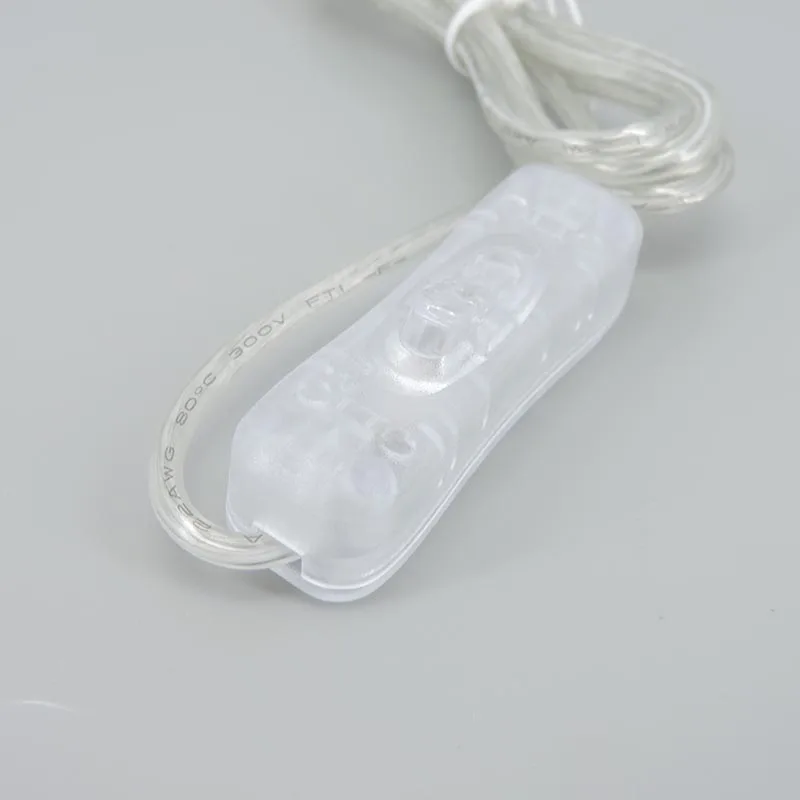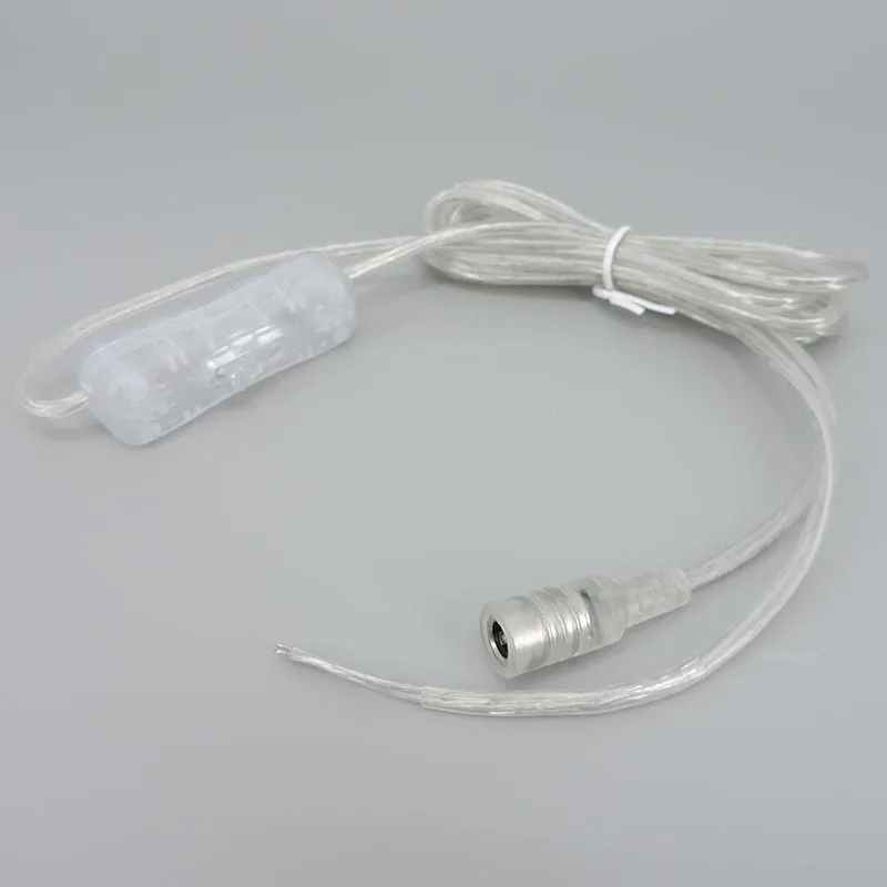 2M 22awg DC 12V Cable Female 304 switch button Connector extension Power supply Cord for LED Strip Light 5.5xmm2.1mm transparent