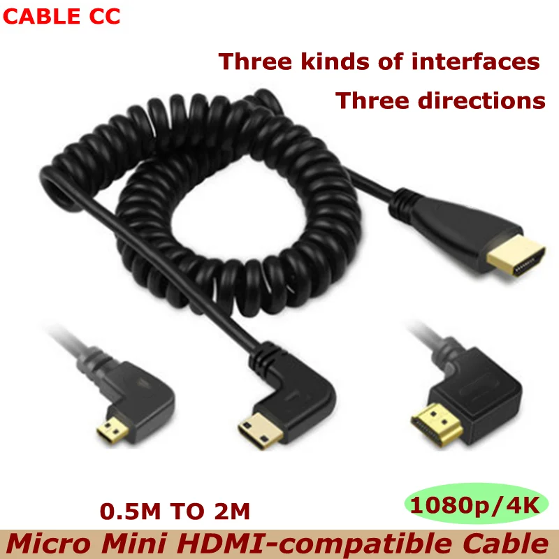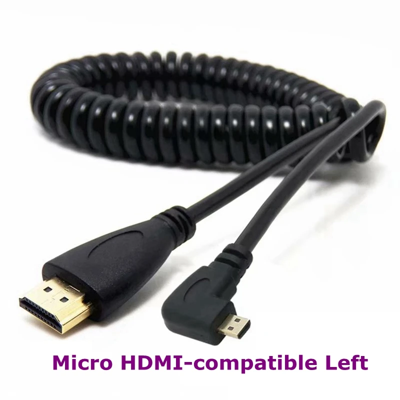 Comprar 2m compatible con HDMI a ángulo derecho e izquierdo Mini Micro HDMI compatible macho a macho Cable Flexible de rizo de resorte elástico V1.4 DSLR