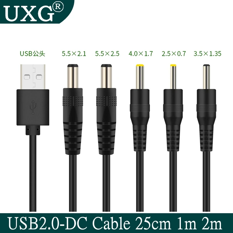 Comprar 2m USB a DC 3,0x1,1mm 2,0*0,6mm 2,5*0,7mm 3,5*1,35mm 4,0*1,7mm 5,5*2,1mm 2,5 * mm 5V 2A DC Barrel Jack conector de Cable de alimentación 1M
