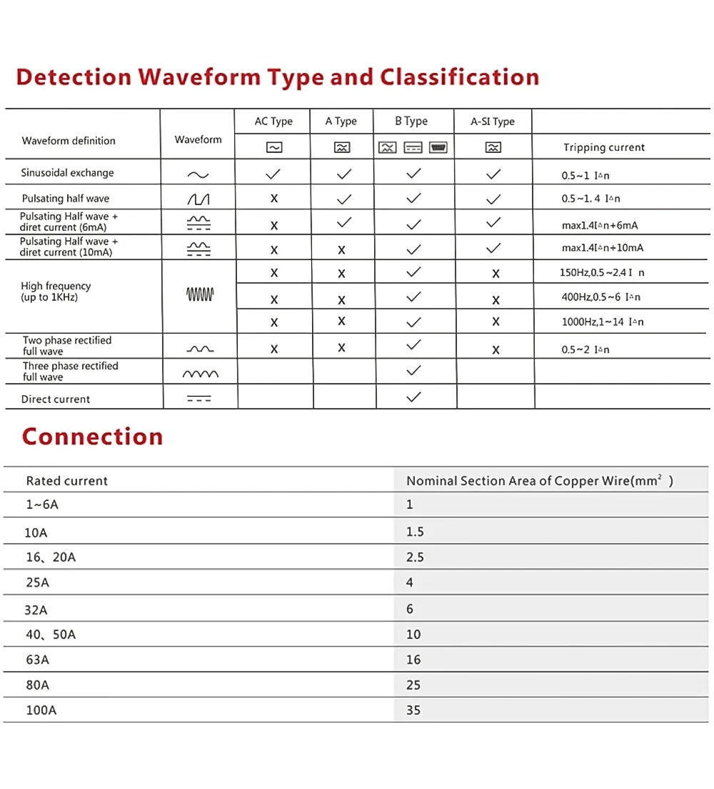 El ELCB RCD RCCB tipo A detecta corriente residual de CC pulsante.Los dispositivos tipo A también son adecuados para aplicaciones tipo CA.Instalado para proteger circuitos donde equipos tienen componentes electrónicos como(1) La corriente CC pulsante restante se superpone con una corriente CC suave de 0,006a.