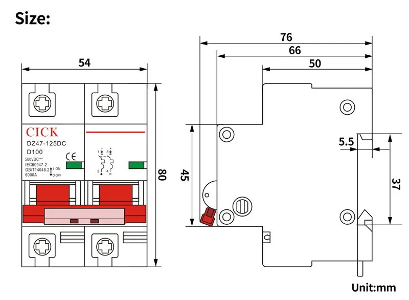 Comprar 2P DC 250V-1000V MCB DZ47 Mini disyuntor Solar 80A 100A 125A protección contra sobrecarga interruptor fotovoltaico para sistema fotovoltaico 500V
