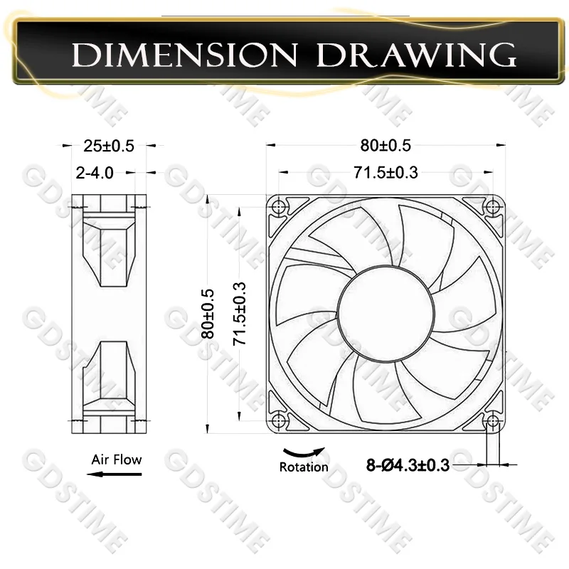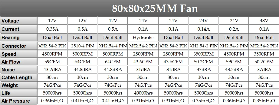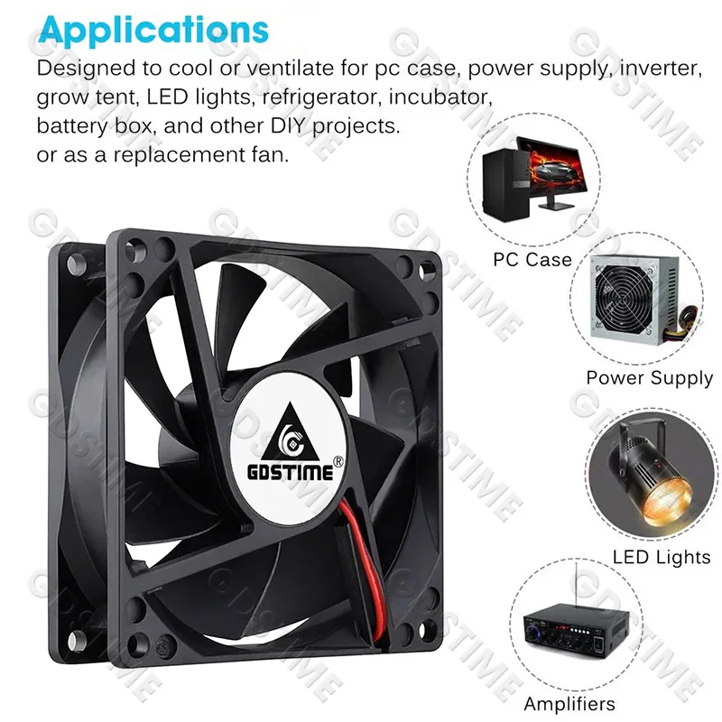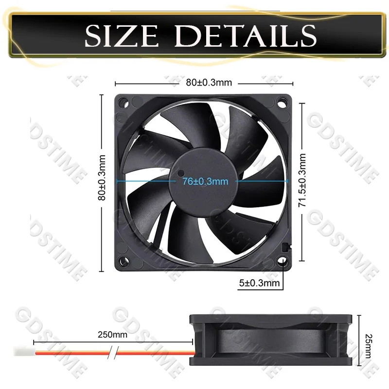 Gdstime 80 × 80 × 25mm DC 5V 12V 48V 2PIN 3PIN 4PIN conector USB ventilador enfriador