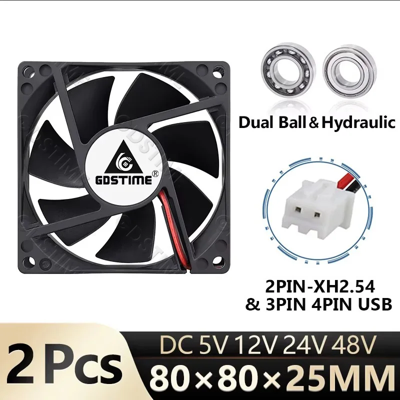 Comprar 2P Gdstime 80x80x25mm 80MM 8CM doble bola 8025 DC 5V 12V 24V 48V 2Pin 3Pin 4Pin ventilador USB para PC caja de ordenador ventilador de refrigeración industrial