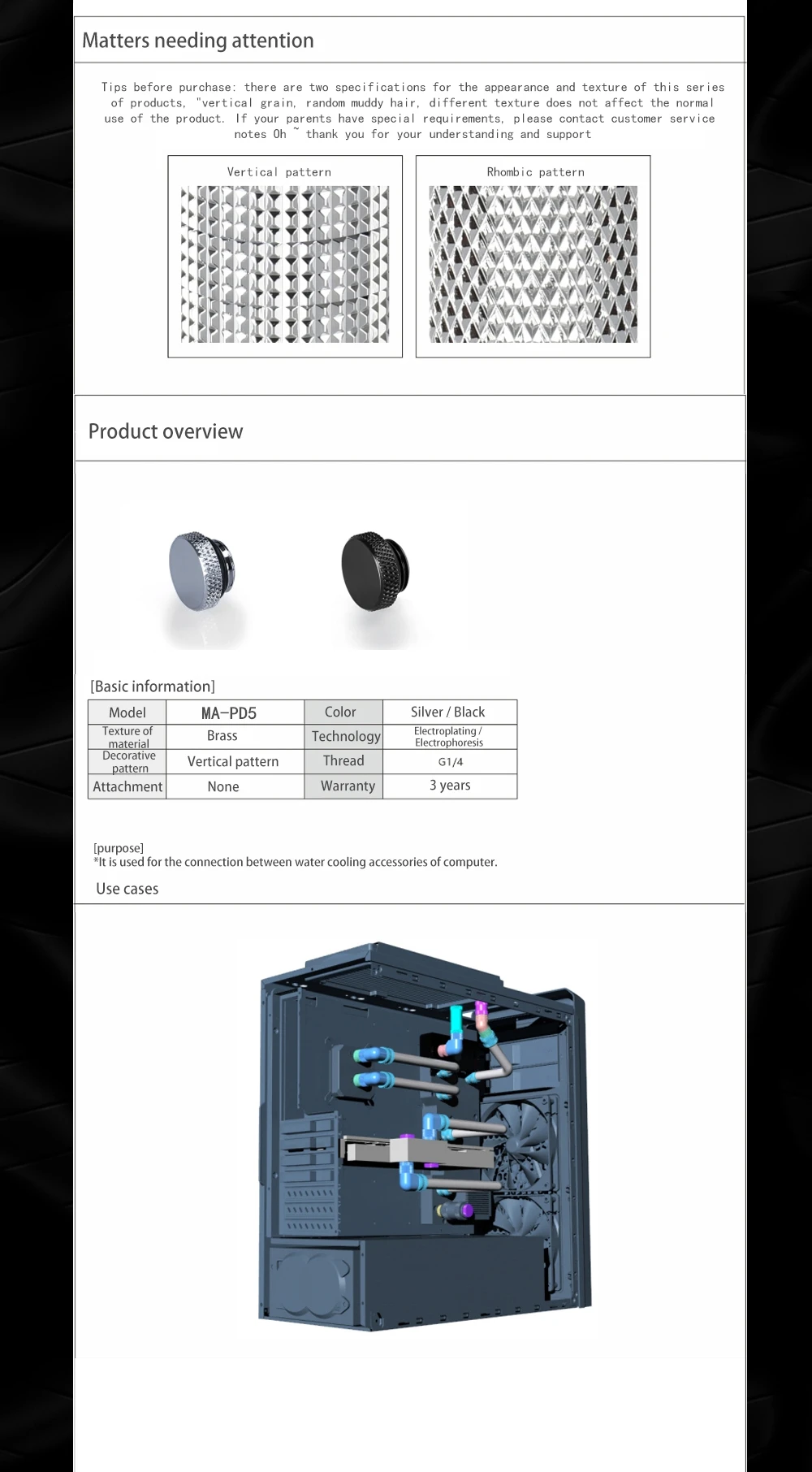 2PCS MA-PD5 High Quality G1/4" Water Plug, Water Stop Plug, PC Water Cooling Fittings