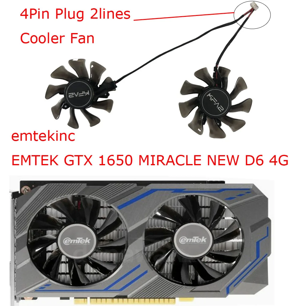 Comprar 2Pcs/Set 4pin 2lines GA82O2M,Tarjeta de vídeo,Ventilador de tarjeta gráfica,para Emtek GTX1650 MIRACLE NEW D6 4GB,para Gainward GTX1050 Ti 4G