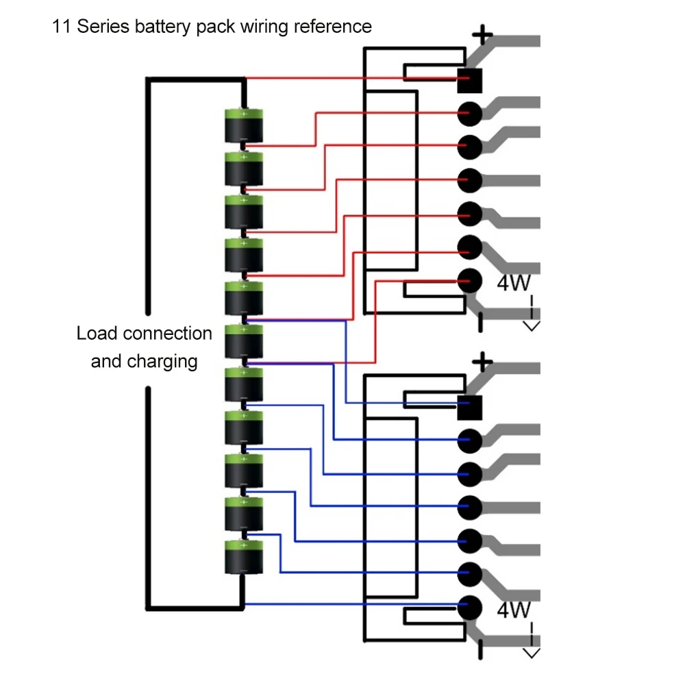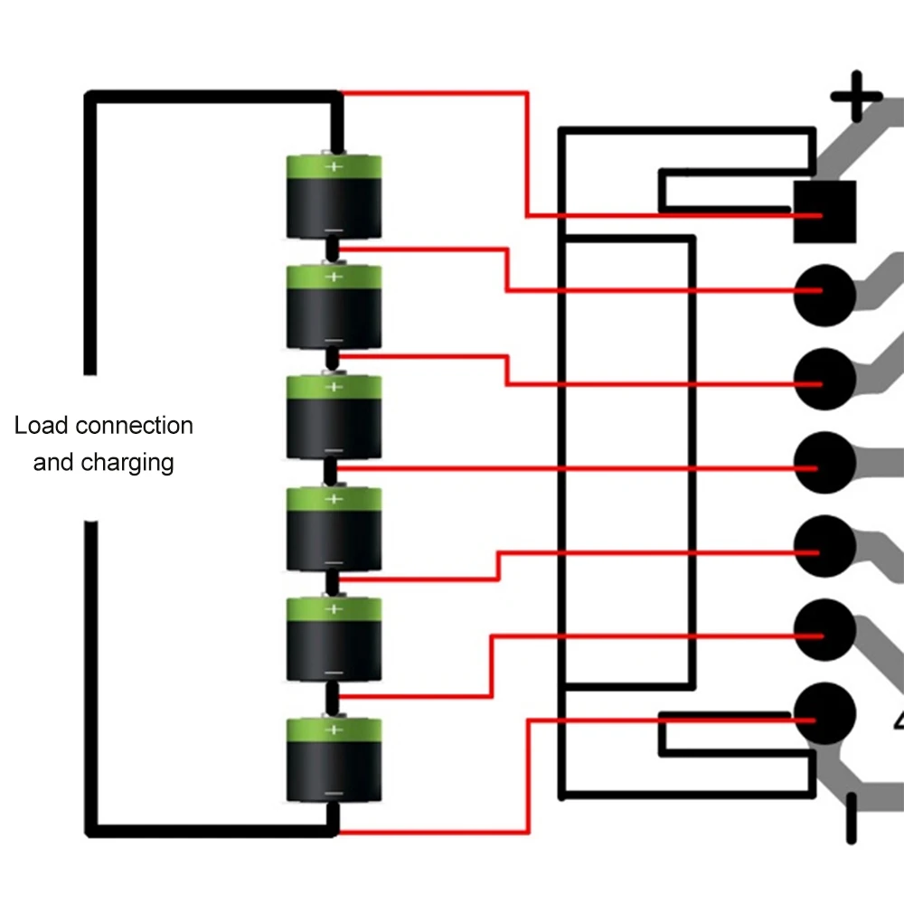 El chip único de esta placa de protección puede proteger la cantidad de cadenas de baterías de 2 a 6.El cableado debe comenzar desde el extremo marcado con "+" en la PCB.Para paquetes de baterías con menos de 6 cadenas, es necesario quitar la resistencia marcada en la PCB (por ejemplo, para conectar 3 cadenas, solo es necesario quitar la resistencia marcada con 3S en la placa y no se deben mover otras resistencias.El cableado debe comenzar desde el polo positivo y conectar 4 líneas, etc.).