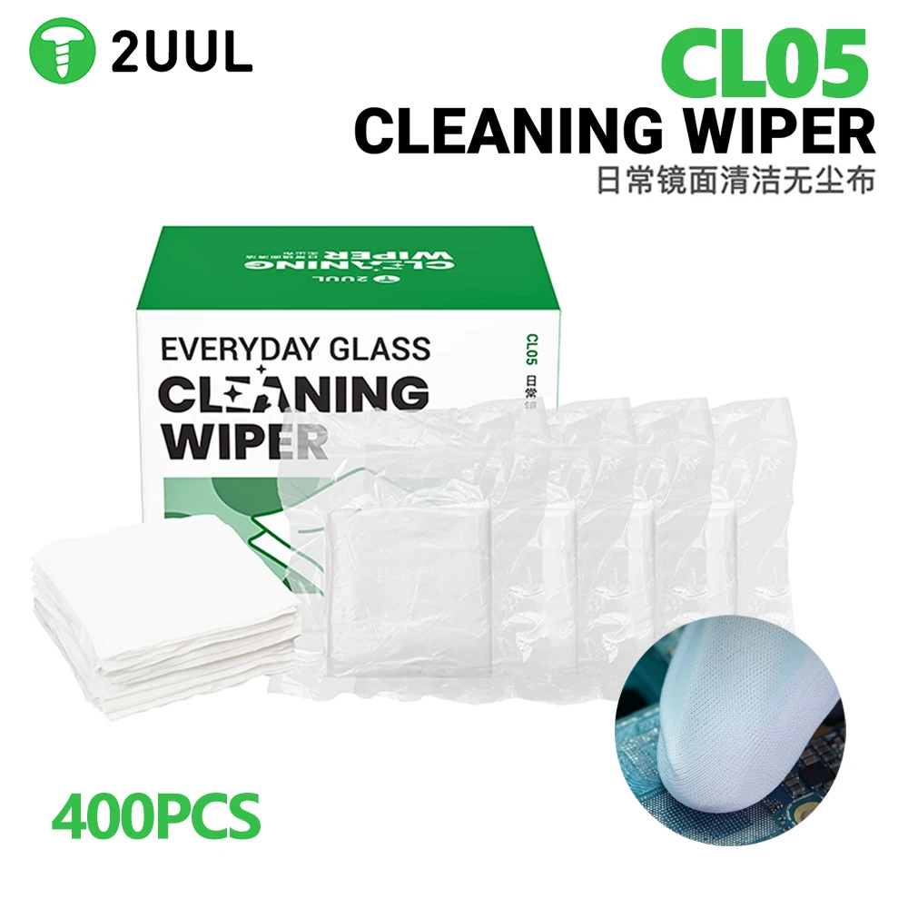 2UUL CL05 limpiaparabrisas 400 Uds alta absorbencia residuos cero para reparación de teléfonos móviles placa base PCB limpieza herramienta de eliminación de polvo