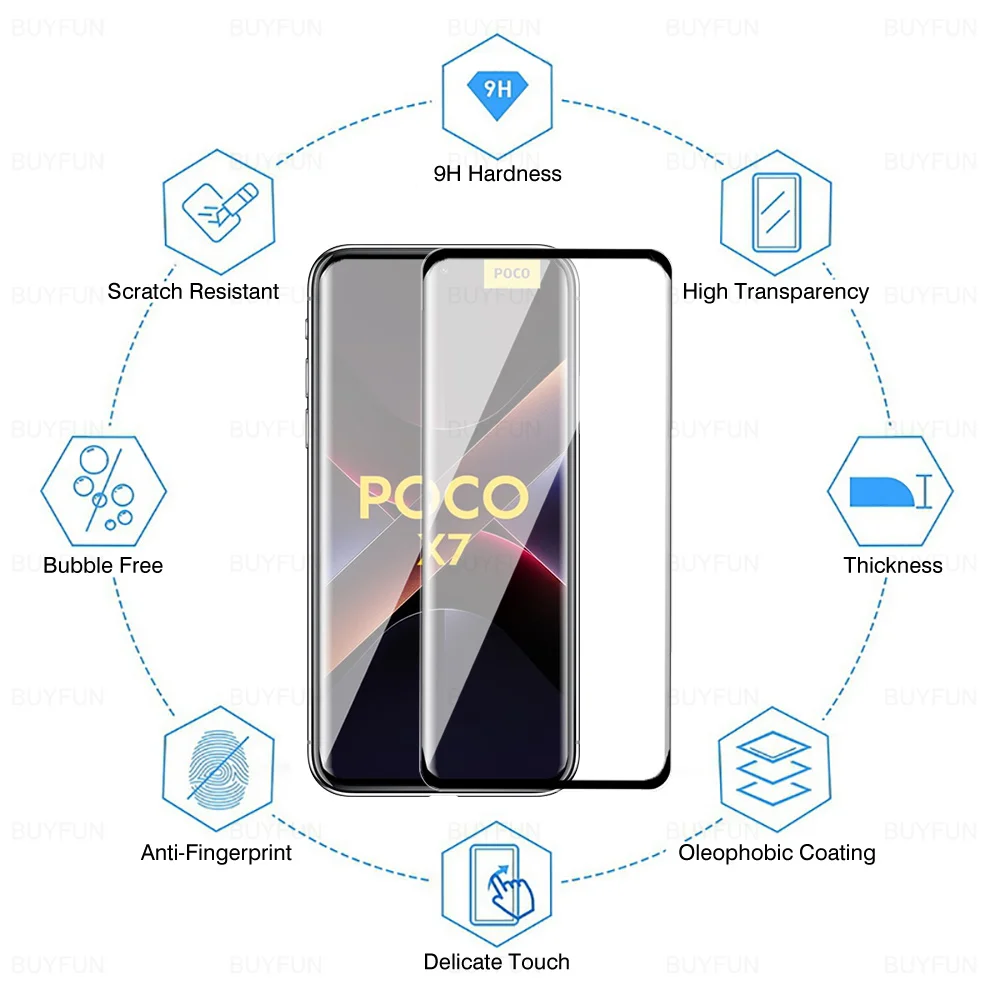 3-1 Uds PoccoX7 vidrio templado curvo para Xiaomi Poco X7 5G Protector de pantalla Poxo X 7 Poko Little x7 cubierta de vidrio frontal Original