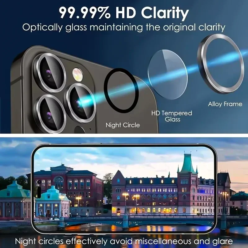 Cristal de protección de lente de cámara de Metal, 3-2 uds., para IPhone 16 17Pro Max 14 Plus 15 Pro Max 13 Mini 16E, lente de IPhone de vidrio templado