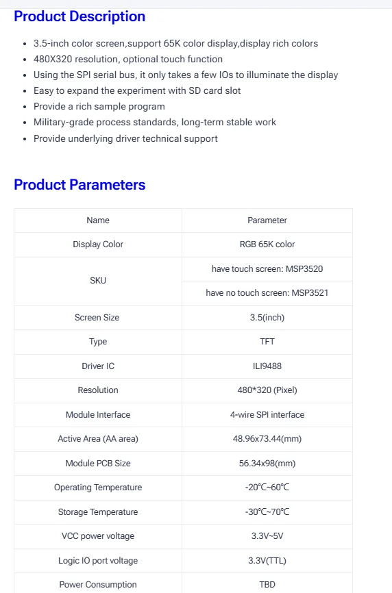 Color:Pantalla LCD de 3.5 pulgadas MHS