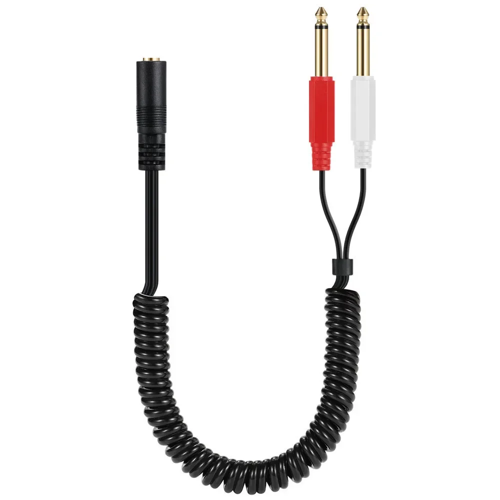 3,5mm (Mini) 1/8 "TRS estéreo a 2 duales 1/4 pulgadas 6,35mm Mono TS macho Y divisor Cable en espiral Cable estéreo a Mono de 3,5mm