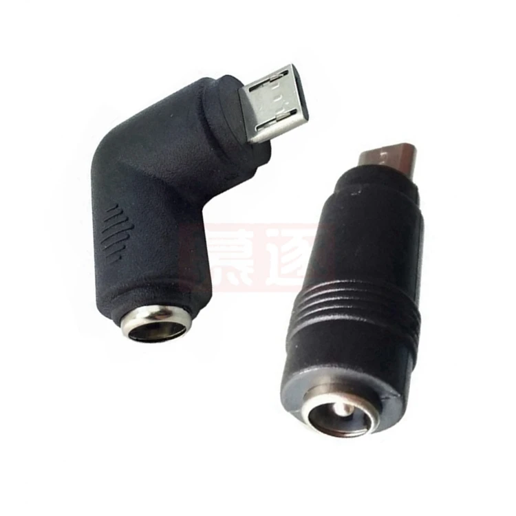DC 5,5x2.1mm hembra a ángulo recto Micro USB 5 pines adaptador de corriente macho convertidor al por mayor codo