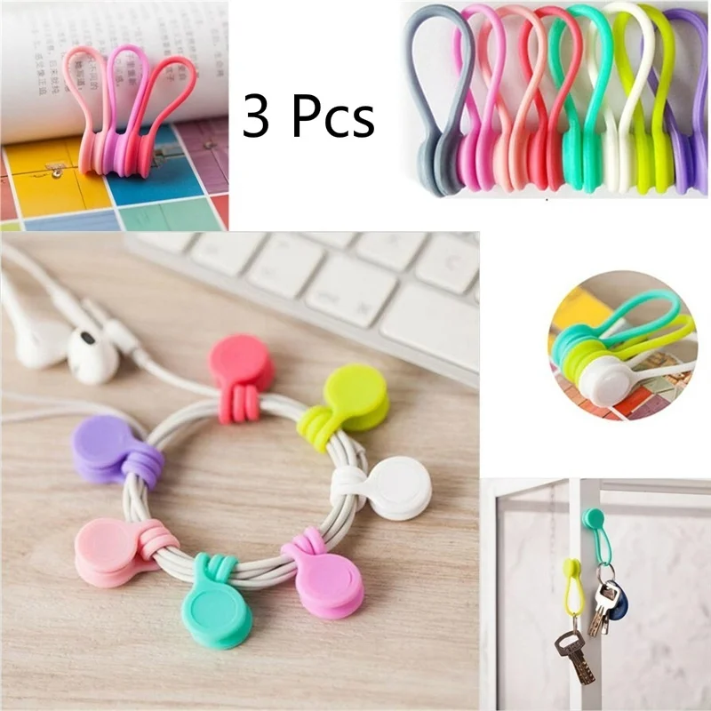 Comprar 3/6 Uds. Bridas giratorias reutilizables para agrupar cables organizadores auriculares Cable de carga USB enrollador de Cable de silicona Clips de Cable magnéticos