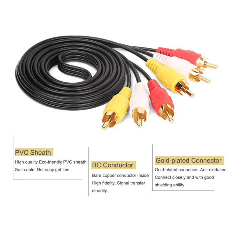 Comprar 3 cables RCA AV a enchufe macho 3 cables Rca conectores de cable de vídeo enchufe con cable de tierra 1M 3M 5M