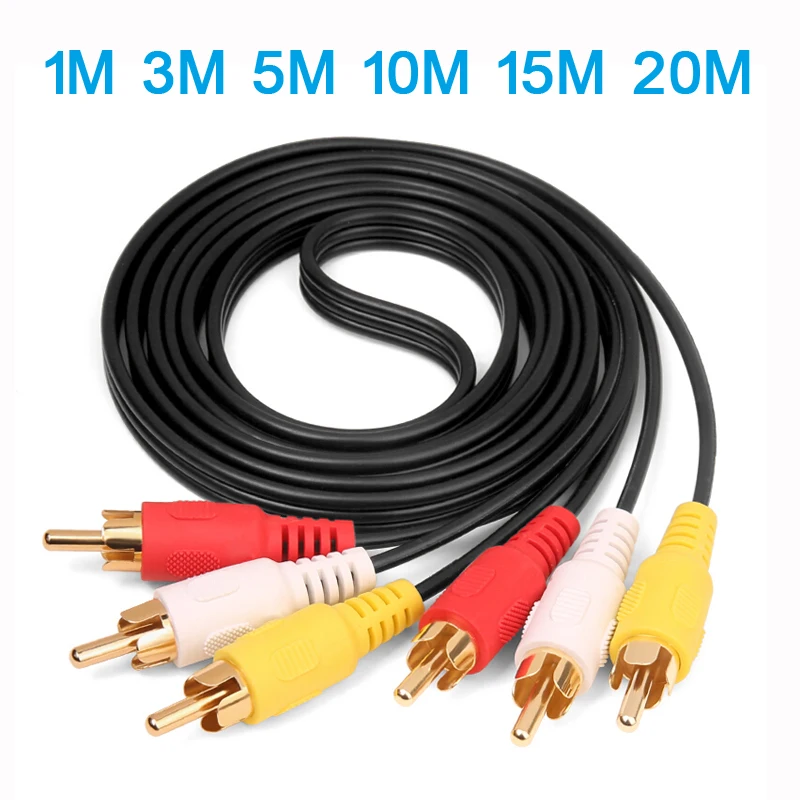 Comprar 3 cables RCA AV a enchufe macho 3 cables Rca conectores de cable de vídeo enchufe con cable de tierra 1M 3M 5M